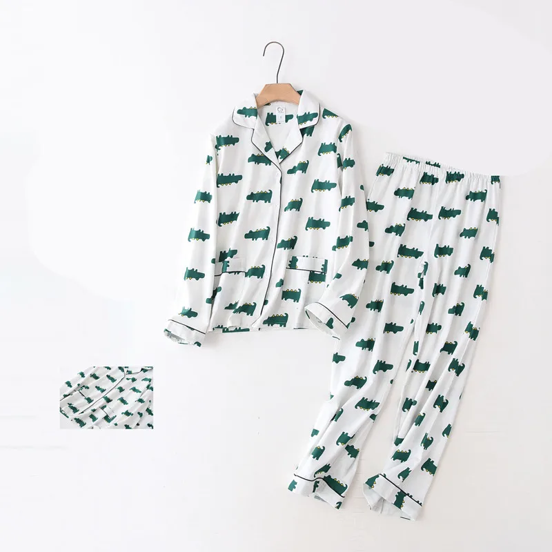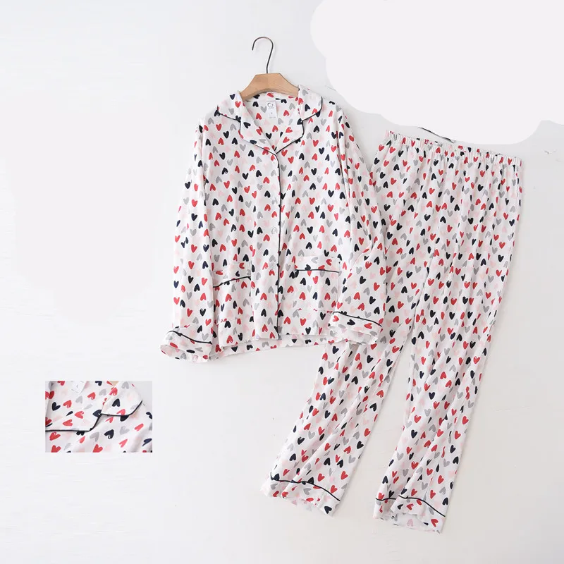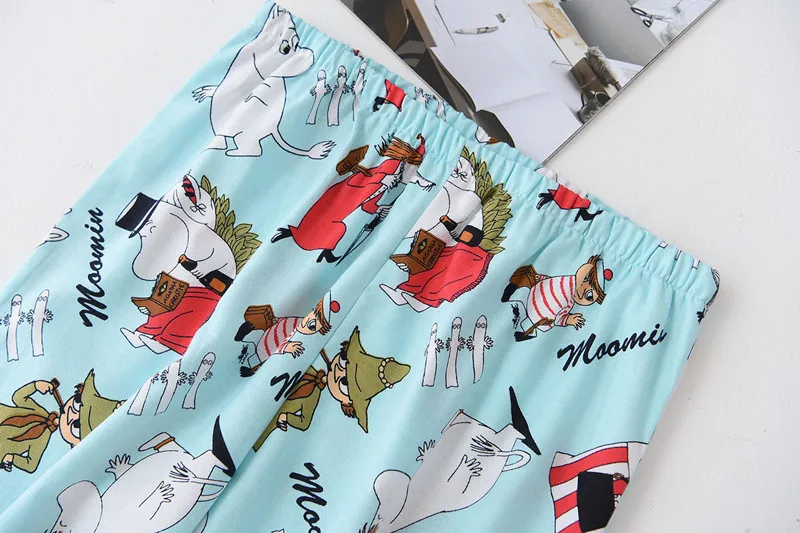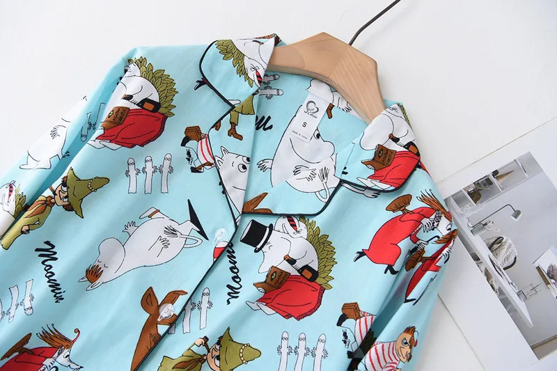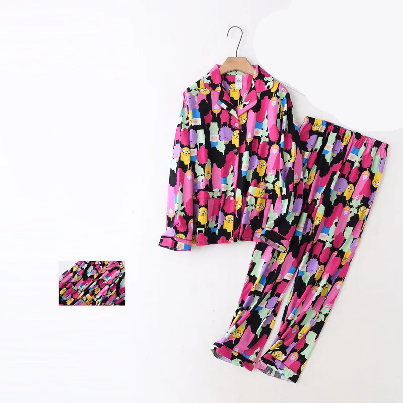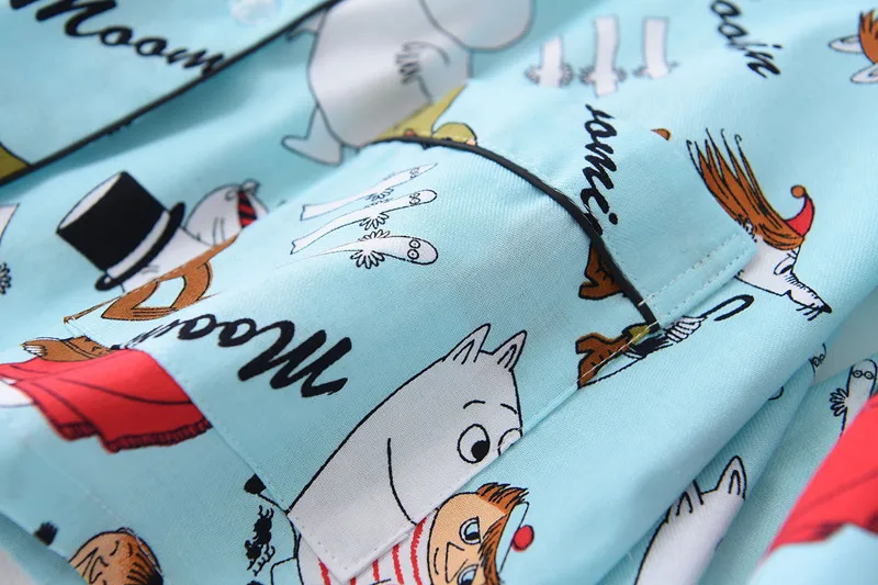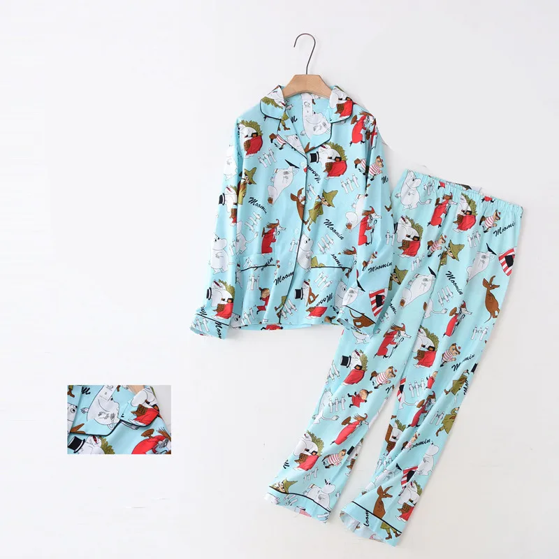 Повседневный пижамный комплект из 100% хлопка, Женская пижама с мультяшным принтом, женская зимняя одежда для сна, теплая пикантная Домашняя одежда, рубашка с длинным рукавом и штаны