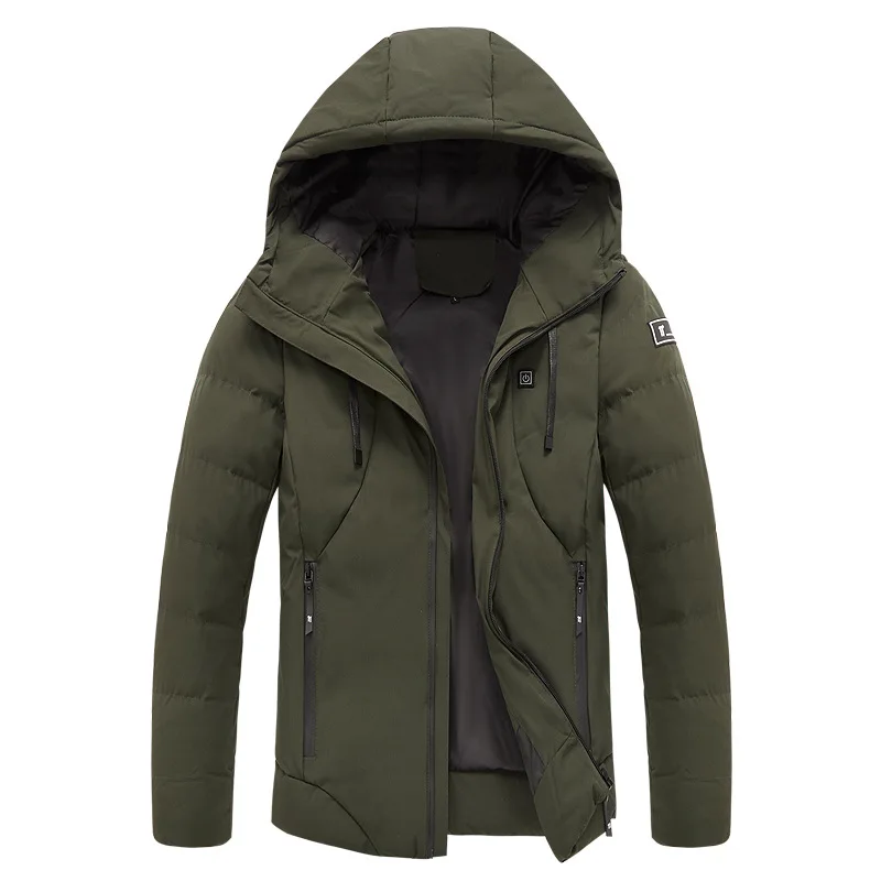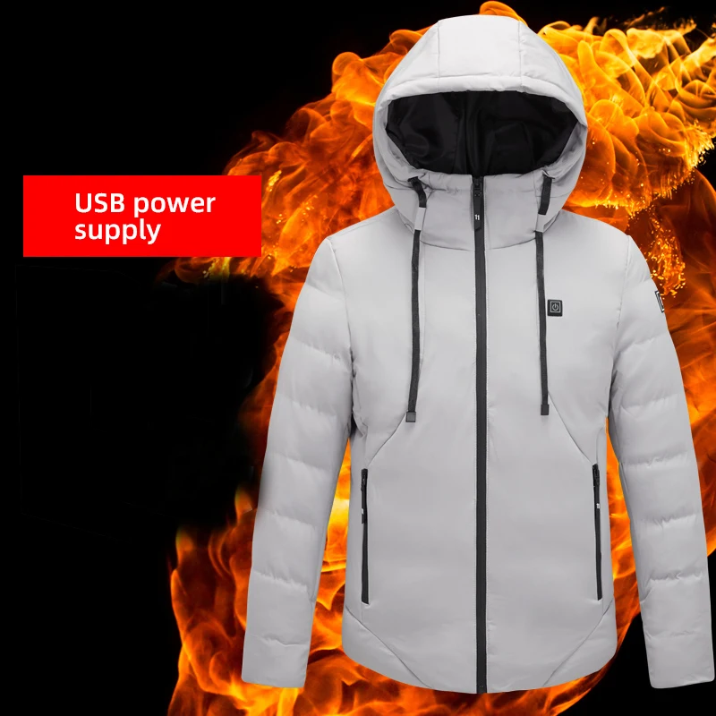 Мужская куртка с подогревом, уличное пальто с USB-разъемом и длинными рукавами, обогревающая Мужская зимняя Термоодежда с капюшоном