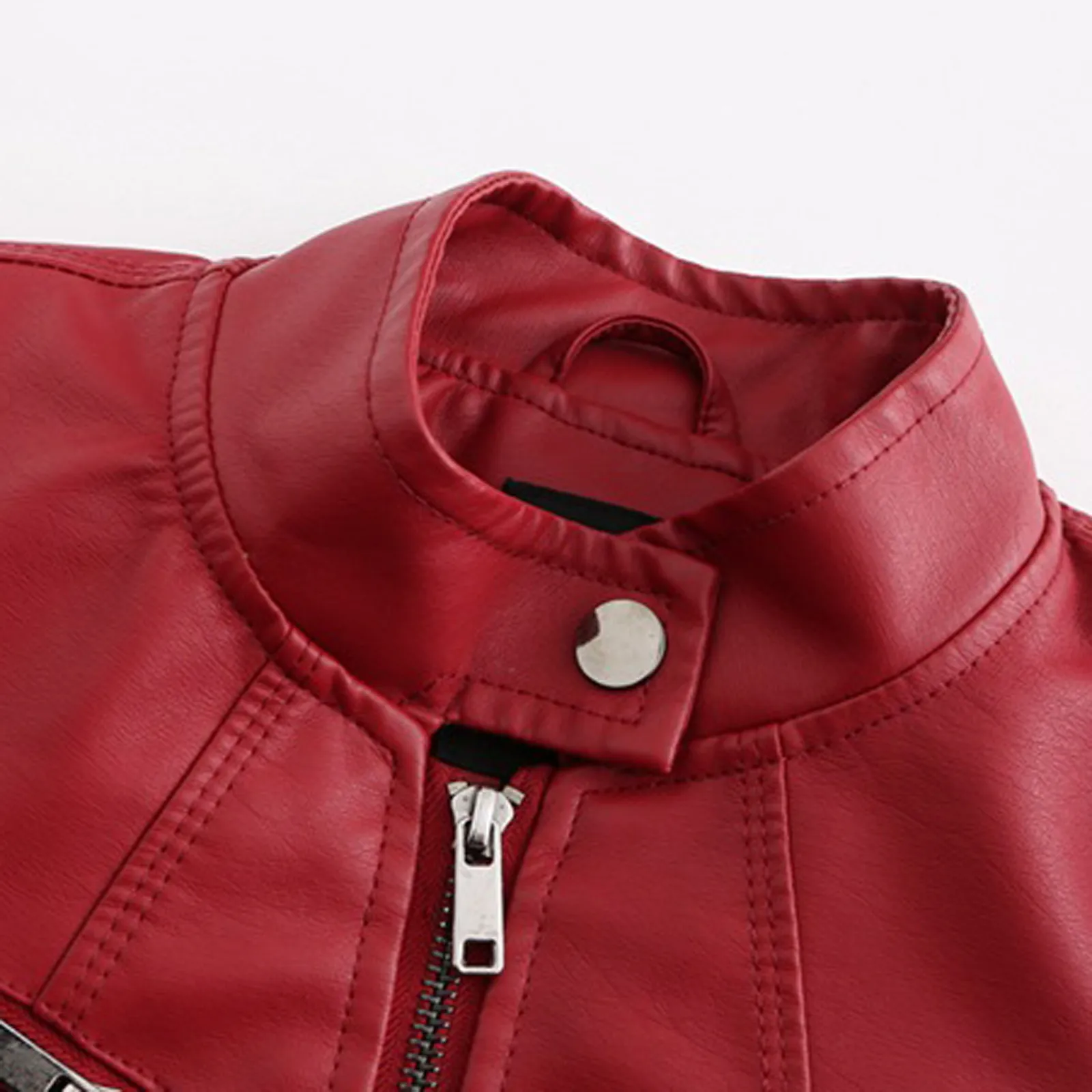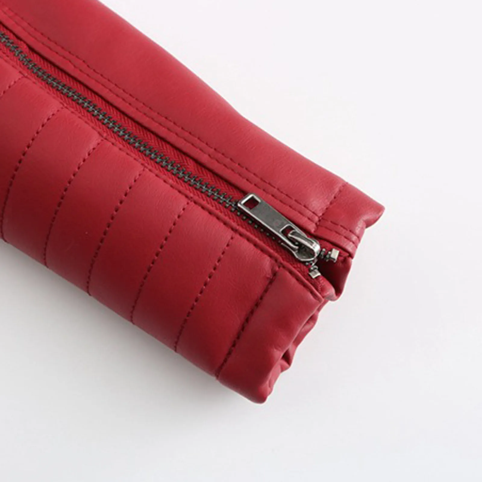 Женская приталенная куртка из искусственной кожи, красная или черна...