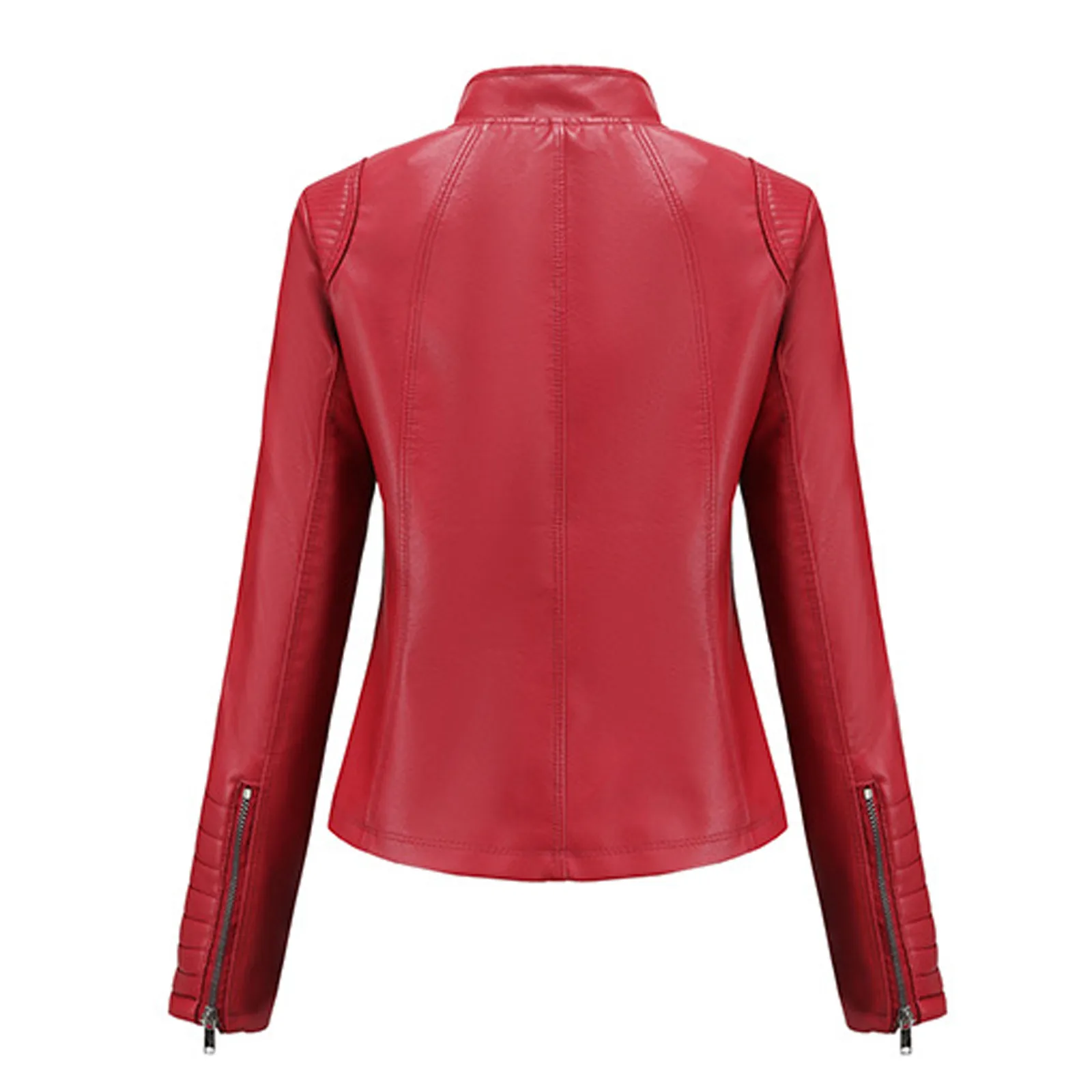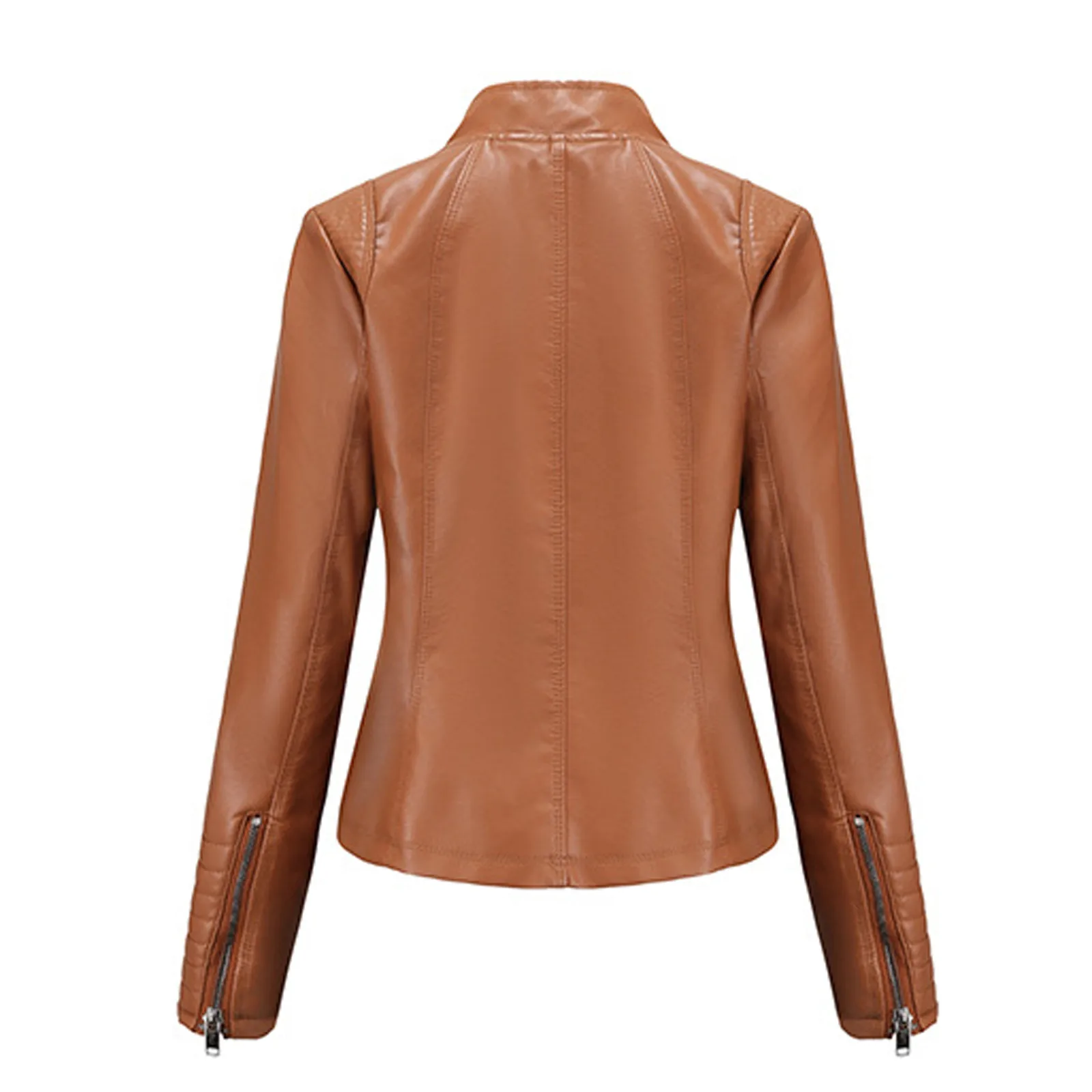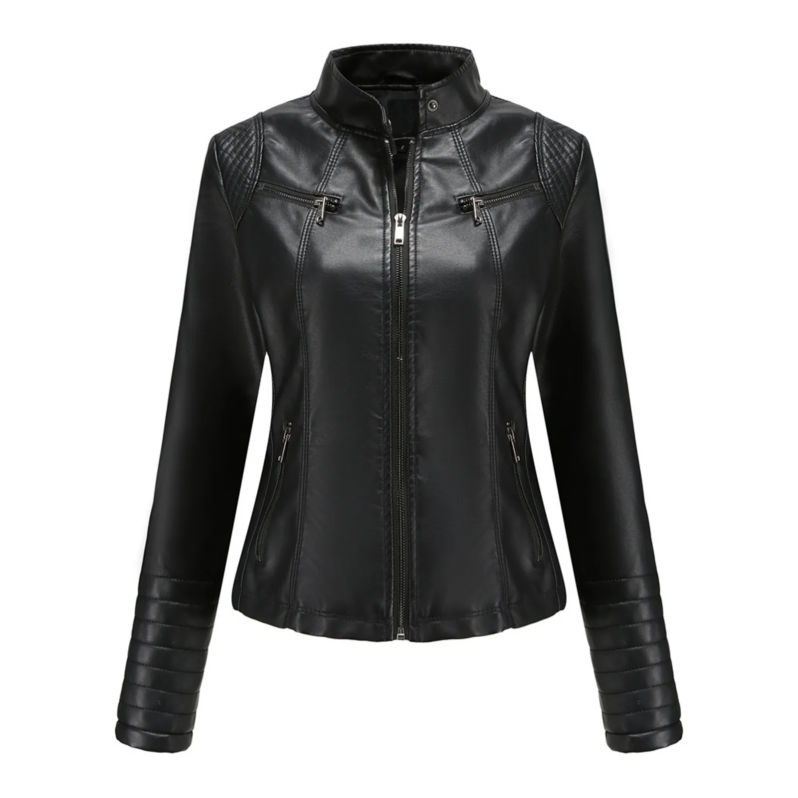 Куртка женская из искусственной кожи, с воротником-стойкой, однотон...