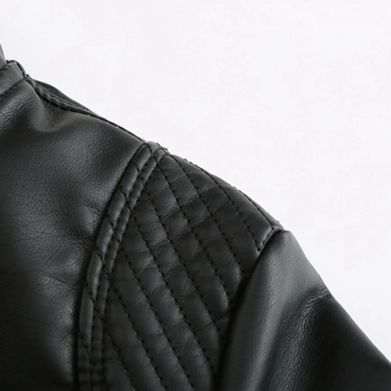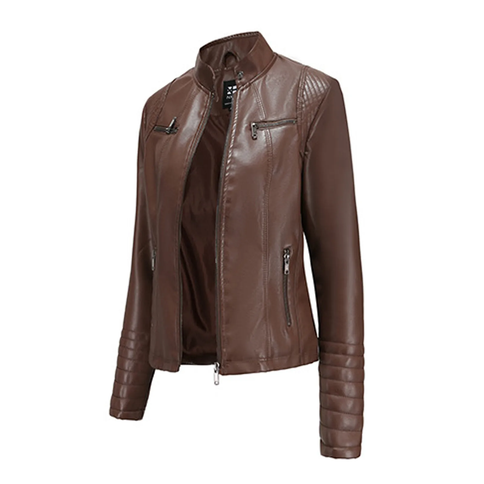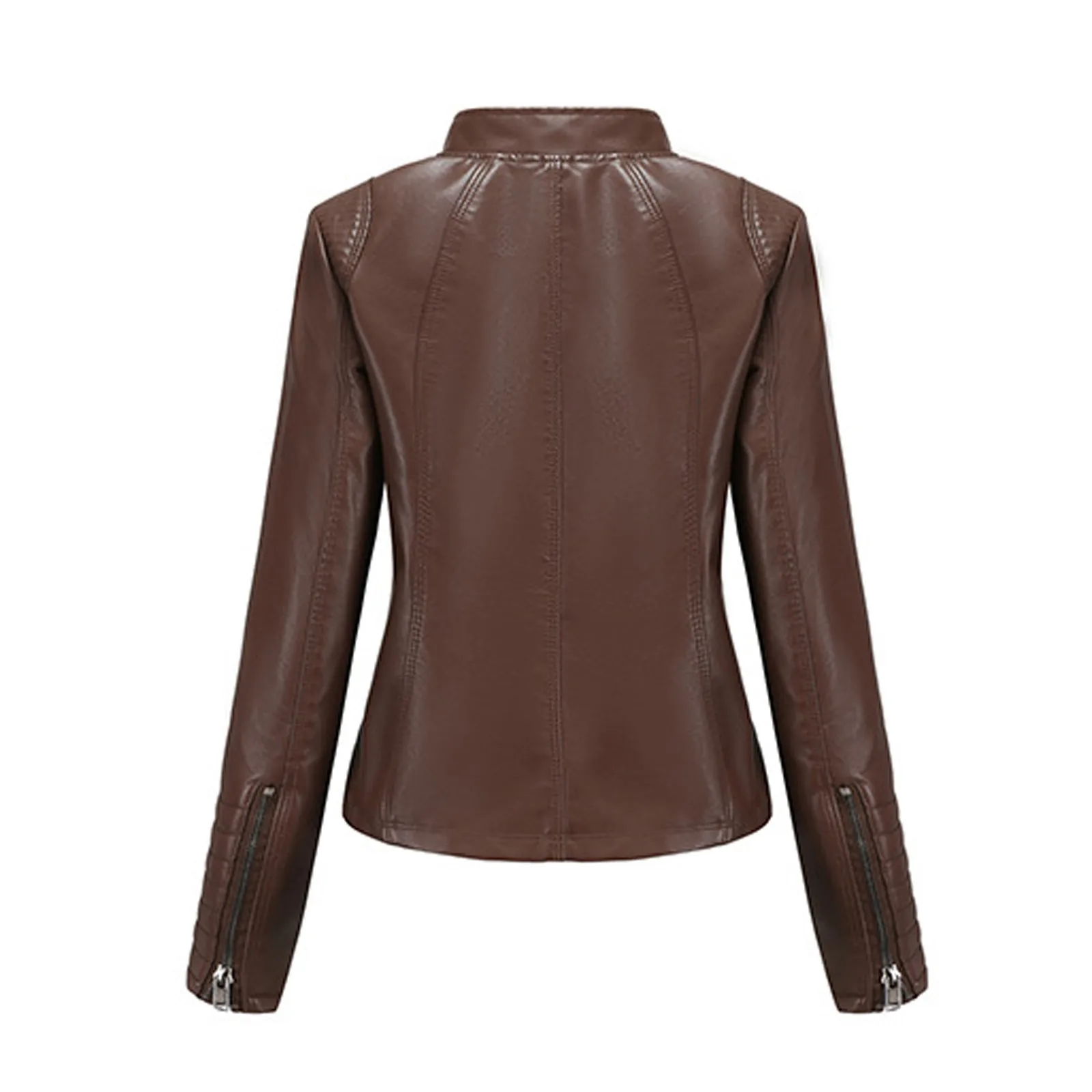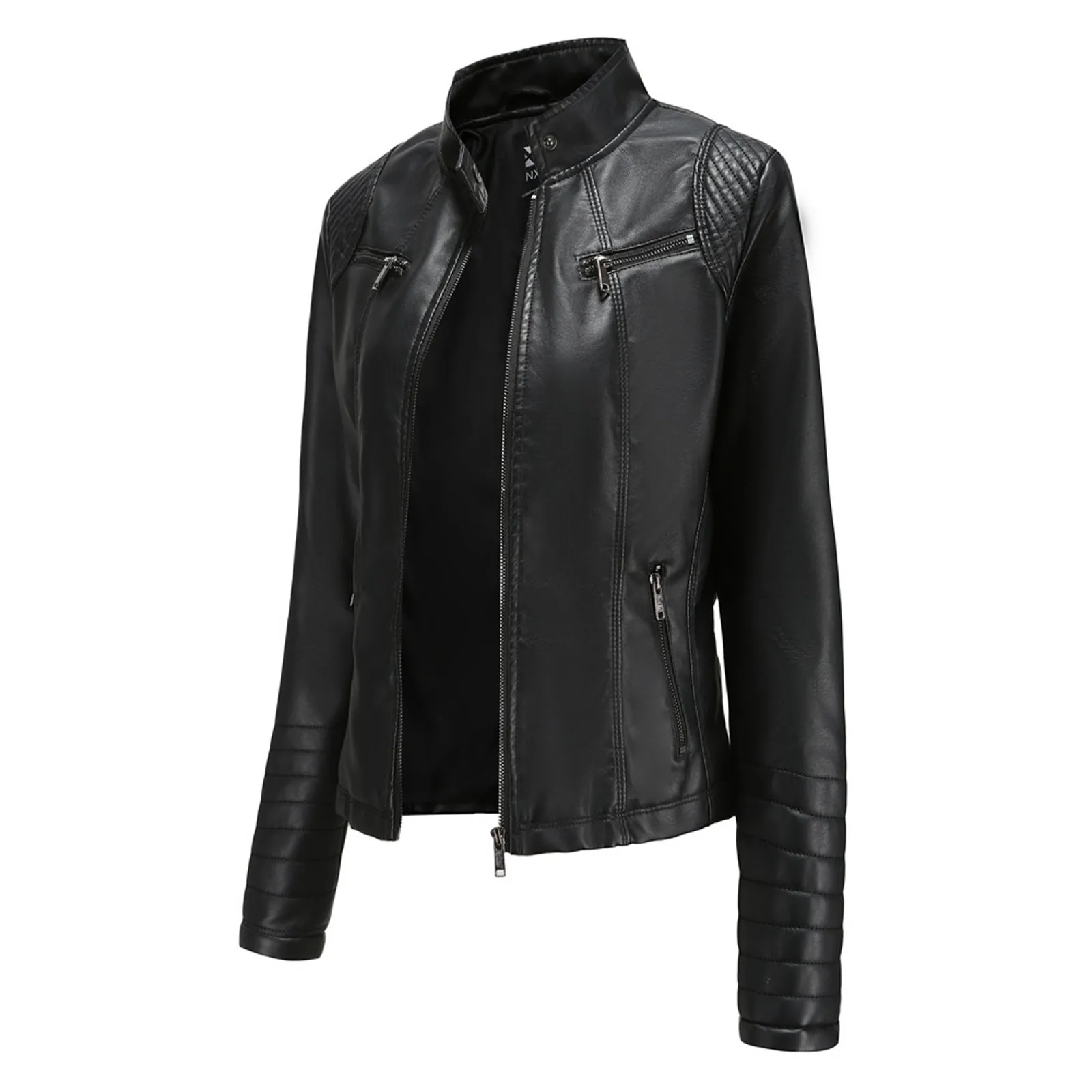 Куртка женская из искусственной кожи, с воротником-стойкой, однотон...