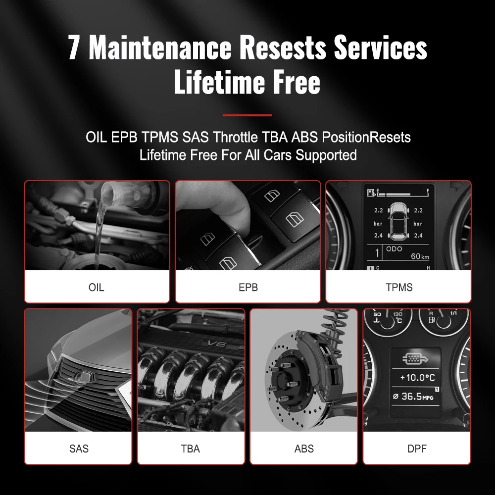 3.MUCAR CS6 поддерживает сброс 7 (масло/EPB/SAS/TPMS/TBA/ABS/DPF) услуги на срок службы бесплатно.