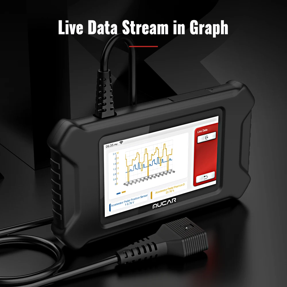 Показать информацию о непрерывном потоке данных от транспортного средства в режиме реального времени (сигнал) дисплей. Поддержка MUCAR CS6 делает диагностический отчет OBD транспортных средств и печатает отчет о транспортных средствах от ПК, это поможет вам понять проблему автомобиля. И вы знаете, как отремонтировать автомобиль.