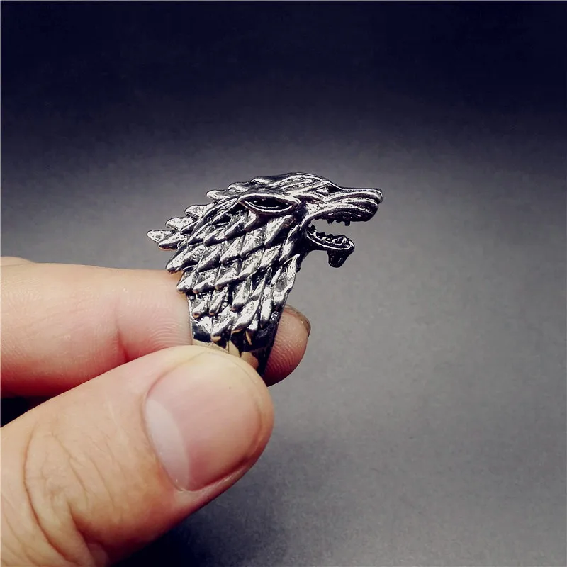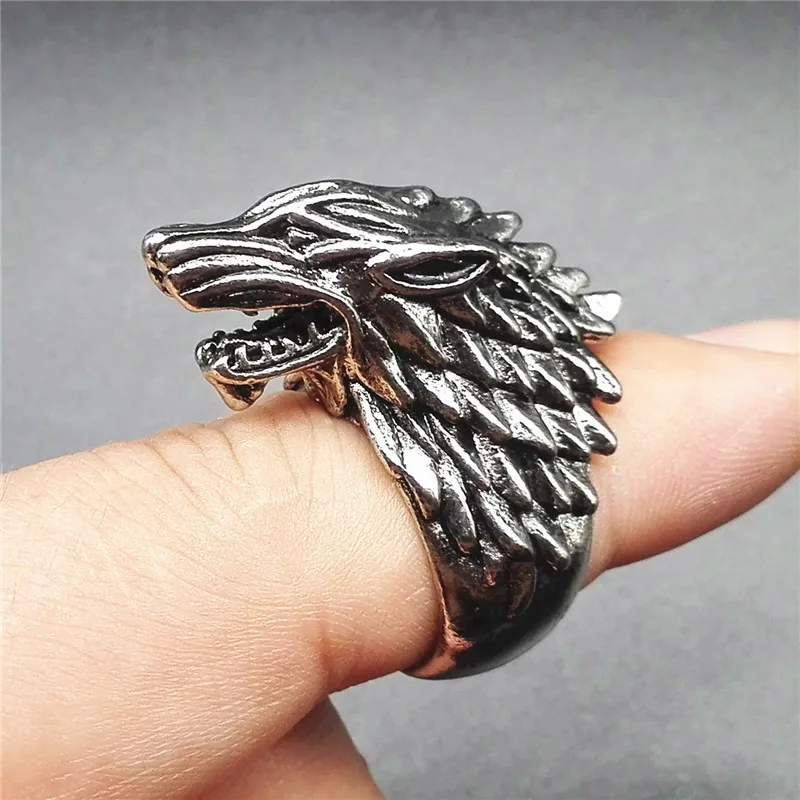 3D реалистичное властное перстень в стиле панк волк с головой дракона животного для мужской вечеринки с серебряной текстурой