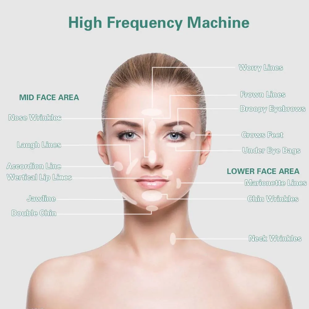 Высокочастотная Электротерапия является важным инструментом красоты. Это через стеклянную электродную трубку для получения высокочастотного тока и нанесения на кожу, таким образом, достигает результата лечения.