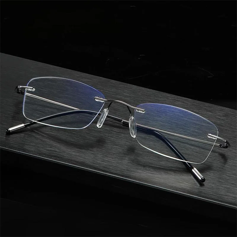 Титан очки для чтения без оправы Для мужчин Для женщин Для мужчин + 1,0 + 1,5 + 2,0 + 2,5 + 3,0 + 3,5 + 4,0, защищающими от вредного синего излучения пресби очки