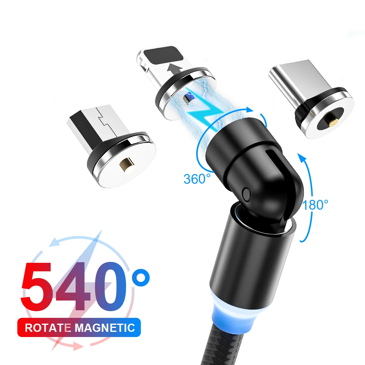 Магнитный кабель с поворотом на 540 градусов для iphone 11, 12 pro max, кабель Micro USB Type-C, магнитный кабель для зарядки, шнур для зарядного устройства