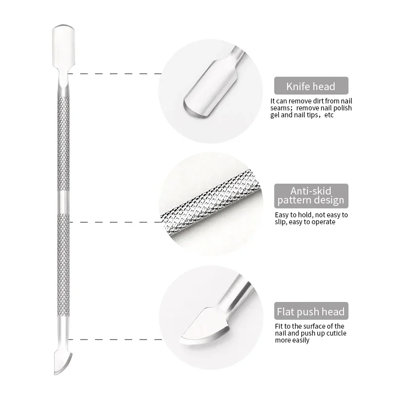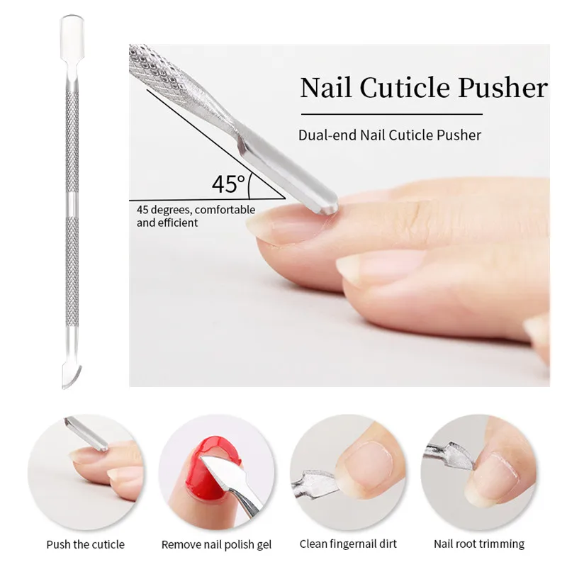 1 шт. двухсторонний толкатель для кутикулы из нержавеющей стали, щипцы для удаления кутикулы, вилка, щипцы для ногтей, резак, инструменты для маникюра и дизайна ногтей