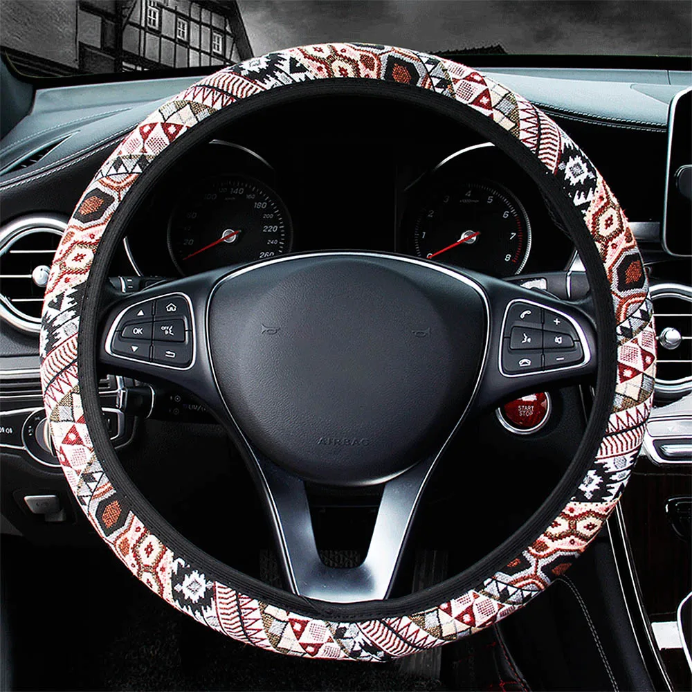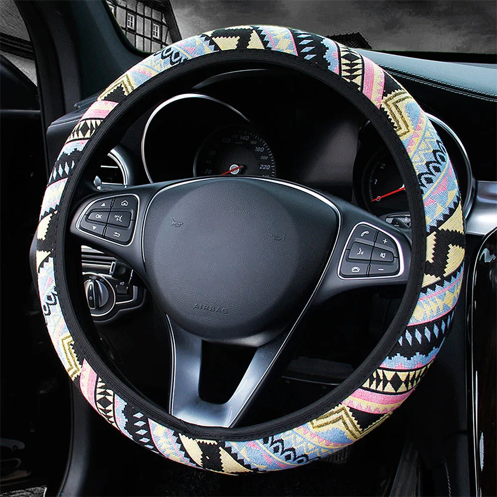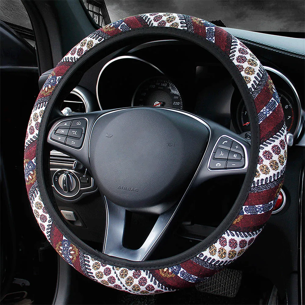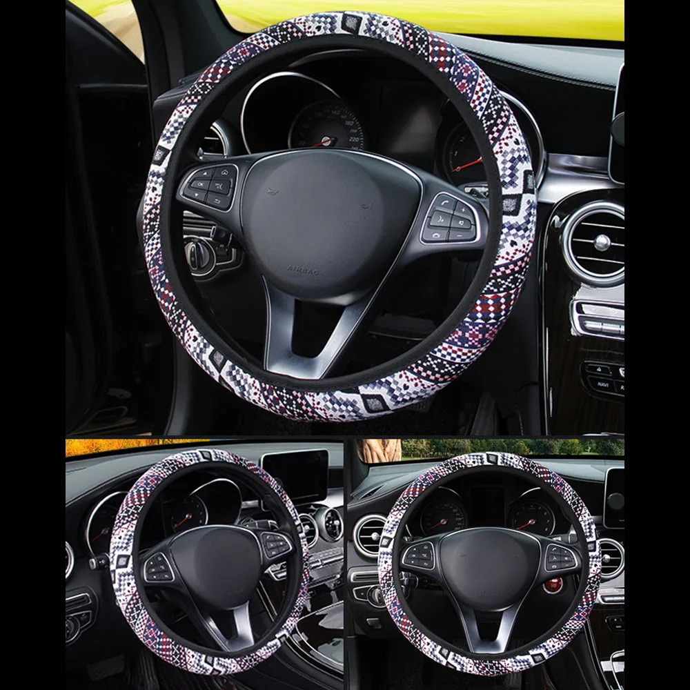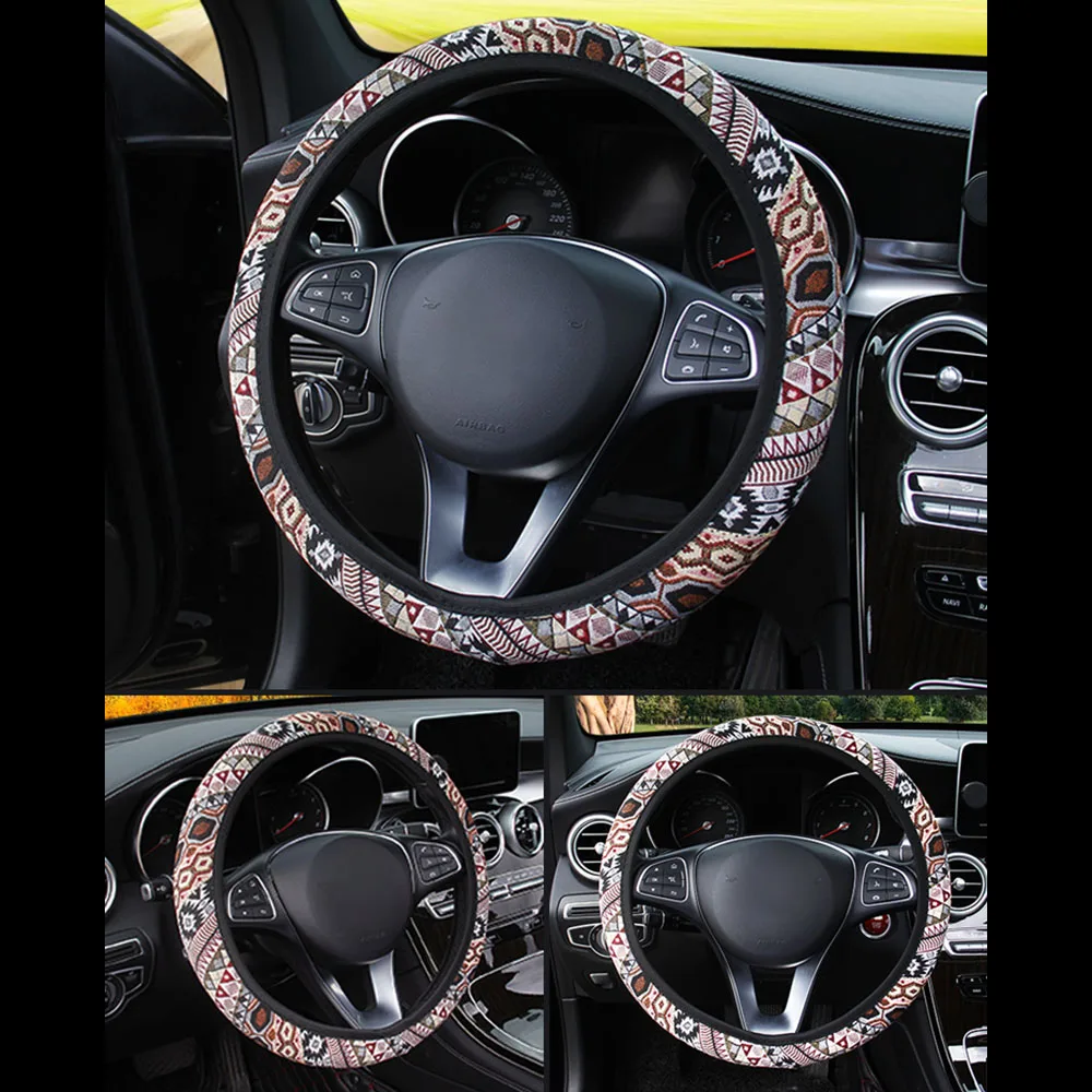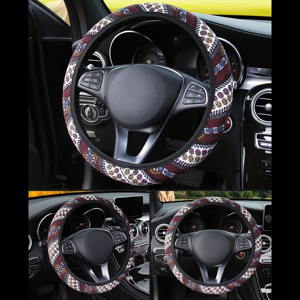 100% Brand new and high qualityFolk-custom Design for car steering wheel coverA universal size, suitable for most of carsMaterial: FabricCompatibility: for 37-39cm car steering wheelColor: as the pictures show