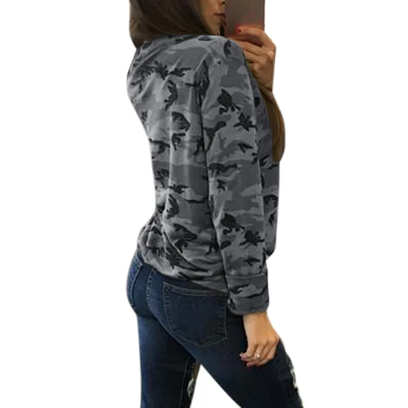 2021 Женская камуфляжная Толстовка толстовки с капюшоном и v-образн...