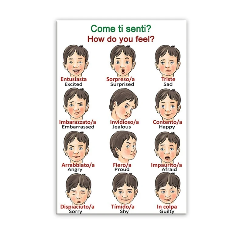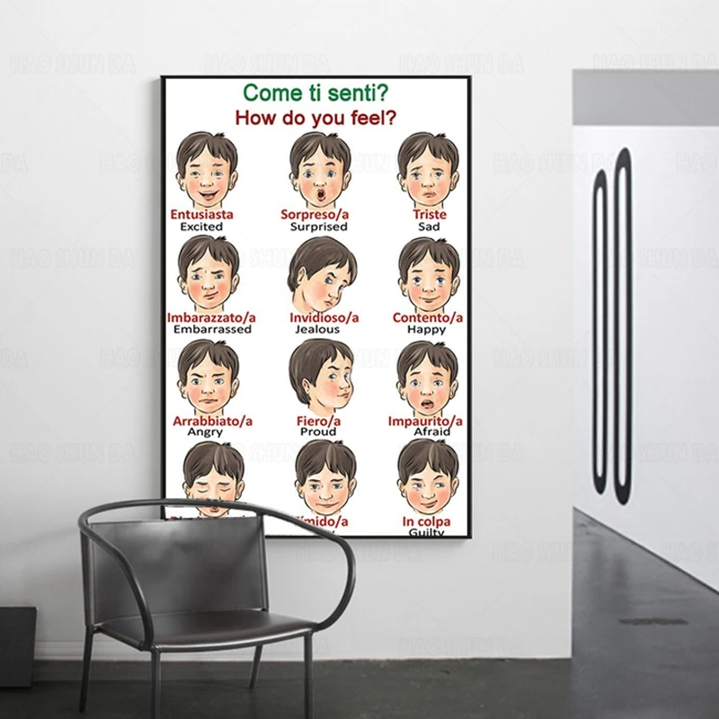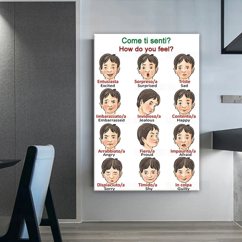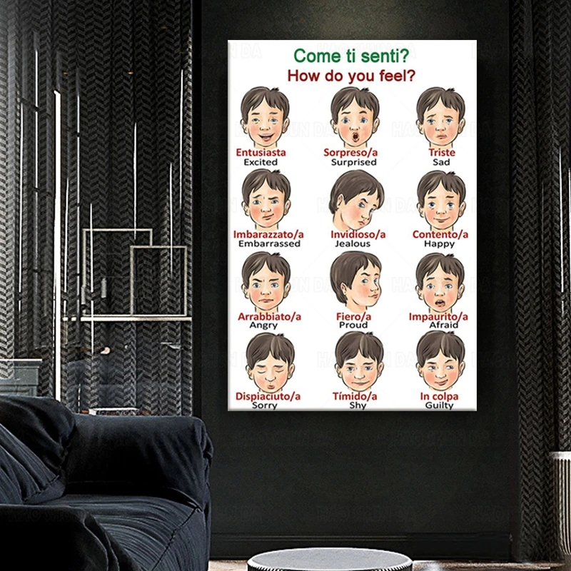 Школьный плакат на итальянском языке: итальянские слова о чувствительности к английскому языку, двуязычный перевод, классная Таблица, Картина на холсте