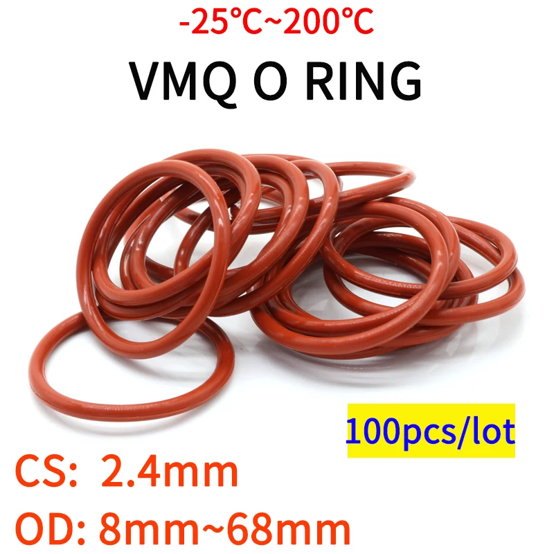 Уплотнительное кольцо VMQ, 100 шт., уплотнительная прокладка, толщина CS, 2,4 мм, внешний диаметр 8 68 мм, силиконовая резина, изолированная, водонепроницаемая шайба круглой формы, Нетоксичная красная