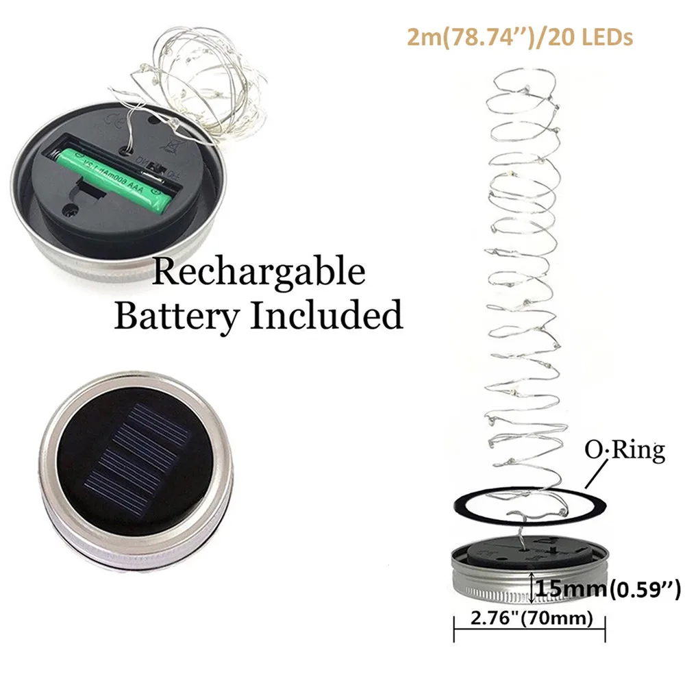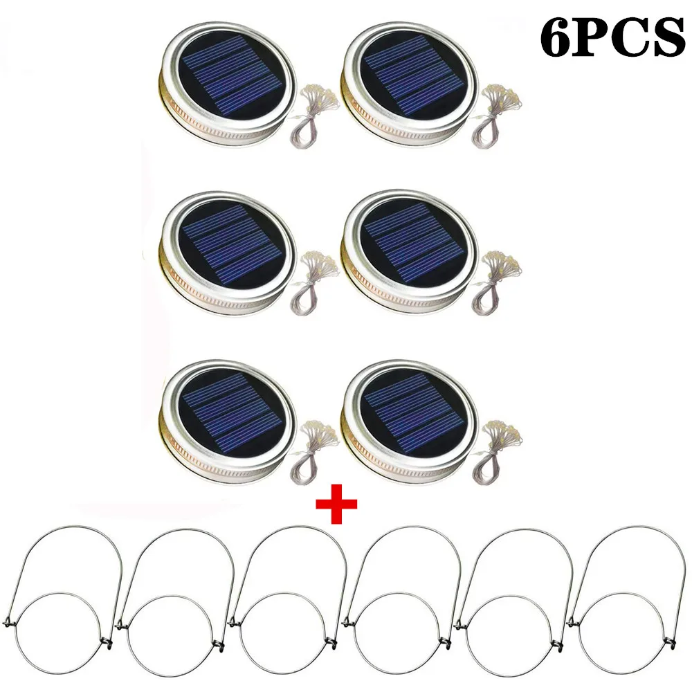 Светильник на солнечной батарее с крышкой для банки, 6 шт., 3 м, ручка s, 30 светодиодов, подвесной фонарь, лампа для украшения сада, цветной светильник