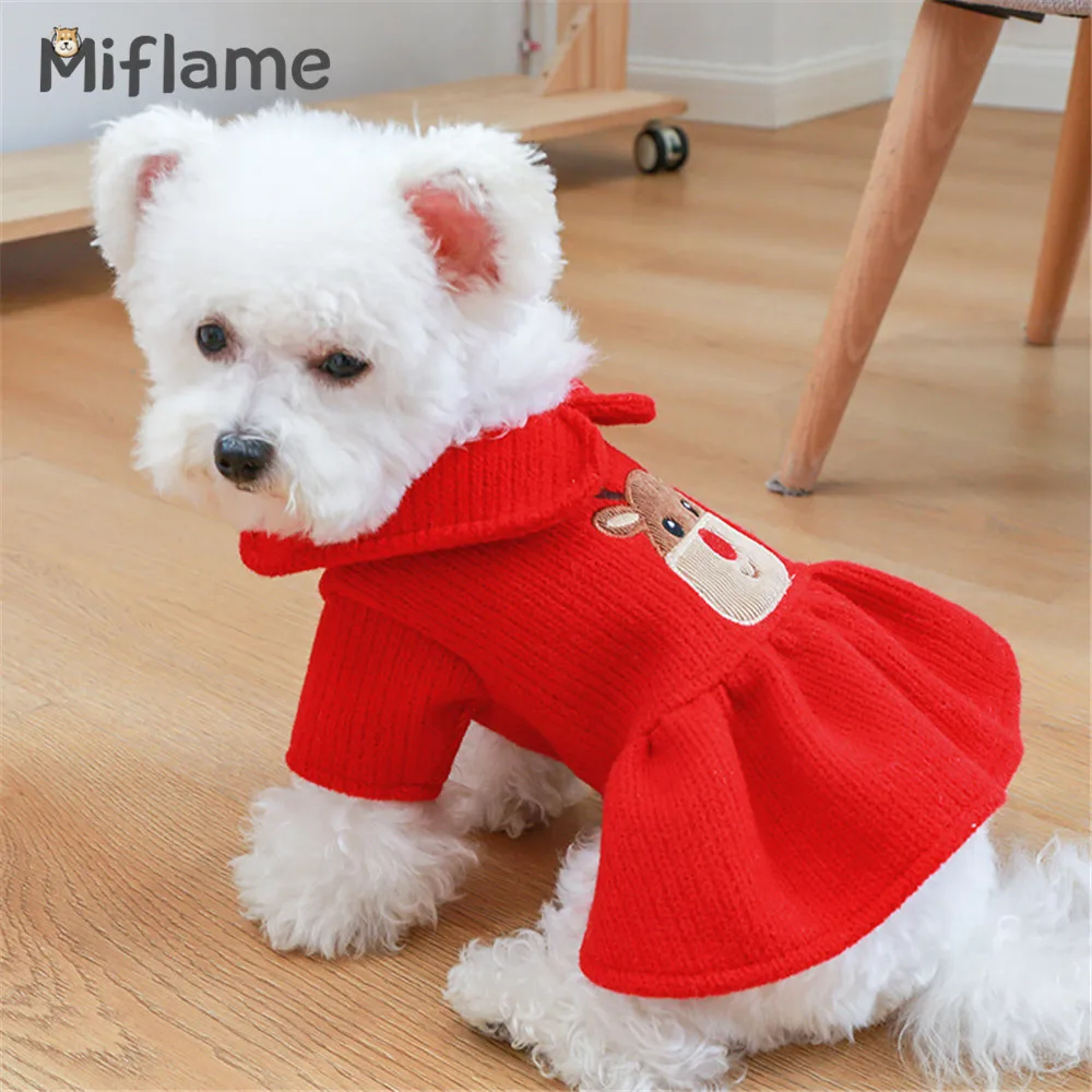 Одежда Miflame для пары собак, Рождественский костюм для собаки, зимние теплые наряды для щенков, платье для маленьких собак с изображением померанского Рождества, оленя, одежда для домашних питомцев, кошек
