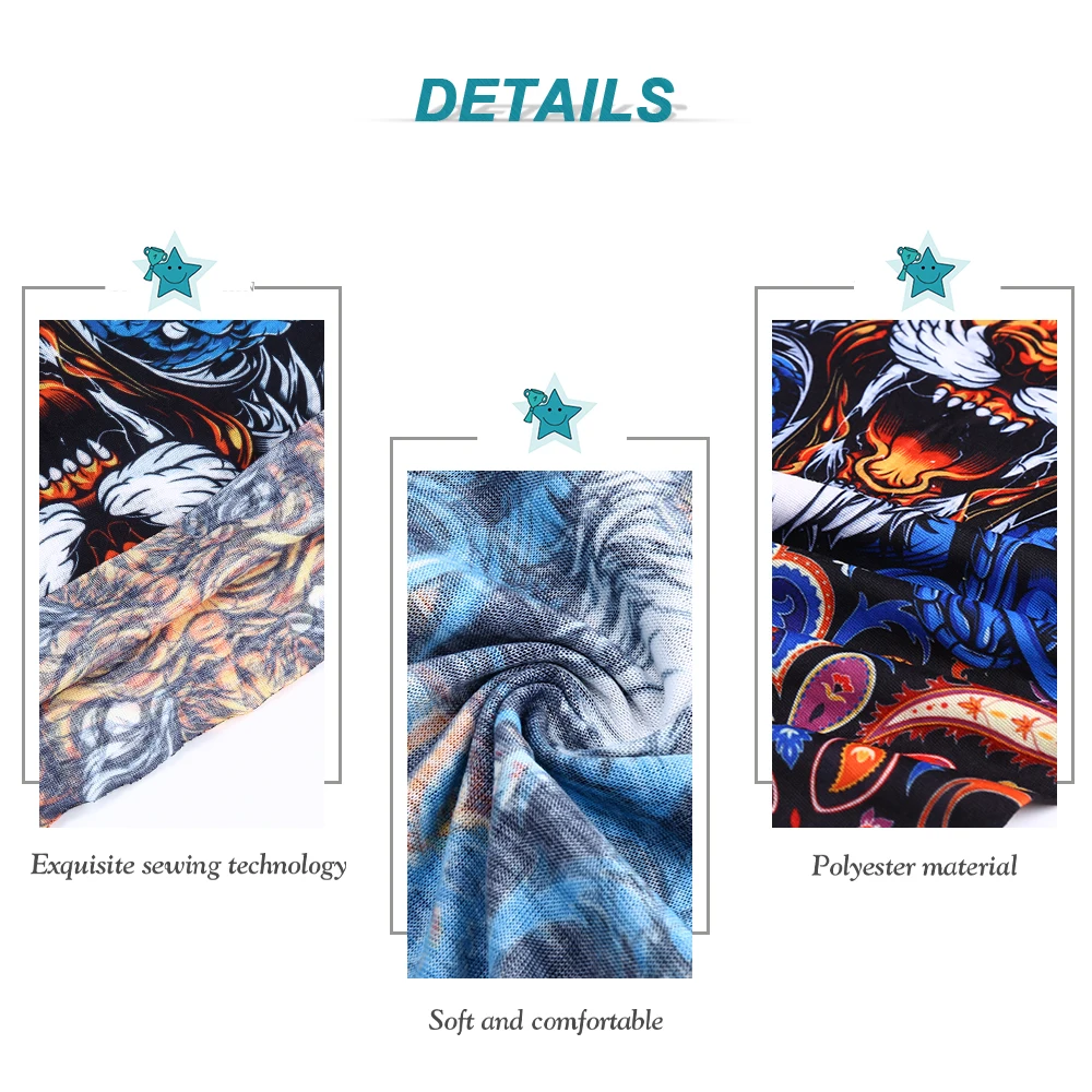 Характеристика:1. Прохладный и дышащий, UPF 50 +, очень подходит для жаркого лета.2. Он очень тонкий и светильник, поэтому вы можете положить его в карман. Легко носить с собой.3. Хорошо продуманная ткань защищает вашу кожу от ветра и ультрафиолетовых лучей.4. Цифровая печать, передовая технология, не выцветает, много раз чистится, все равно как новая.