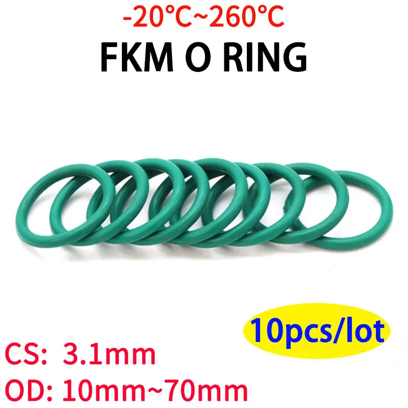 10 шт. CS3.1mm OD 10 70mm Green FKM флюоровое резиновое уплотнительное кольцо уплотнительная прокладка изоляционное масло устойчивое к высоким температурам зеленое