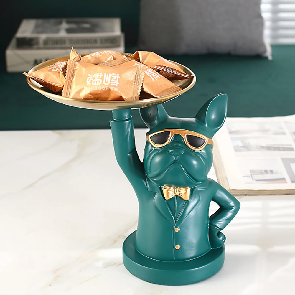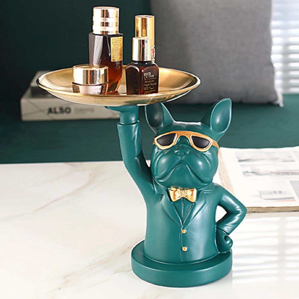 Статуя французского бульдога из смолы, поднос для хранения мелочей ...