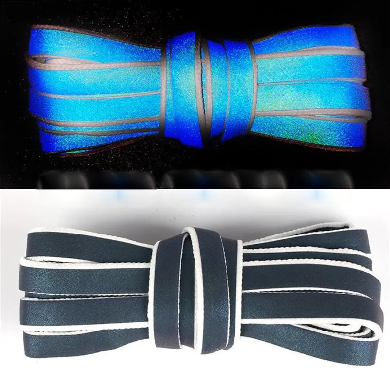 Новые голографические светоотражающие шнурки, двусторонние Светоотражающие Яркие Светоотражающие плоские шнурки 120 см
