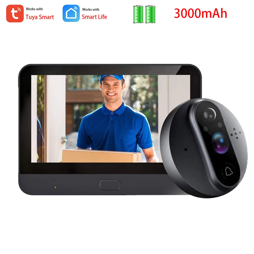 Дверной видеоглазок Smart Tuya, Wi-Fi, 720P, 4,3 дюйма, ночное видение