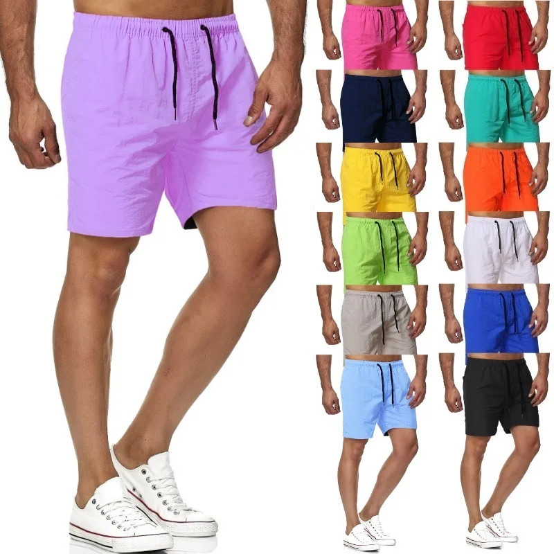 Мужские повседневные дышащие рабочие брюки, пляжные однотонные спортивные шорты с карманами, мужские шорты для бега, дышащие шорты с карманами, новинка 2021