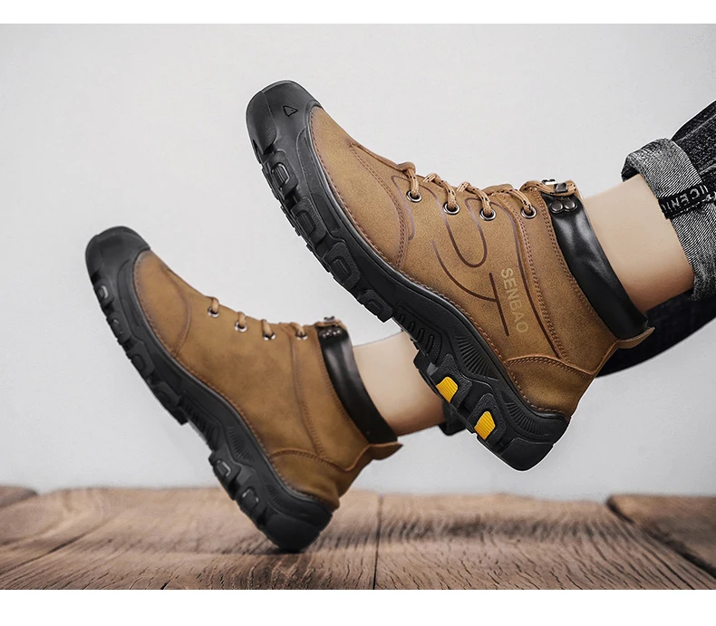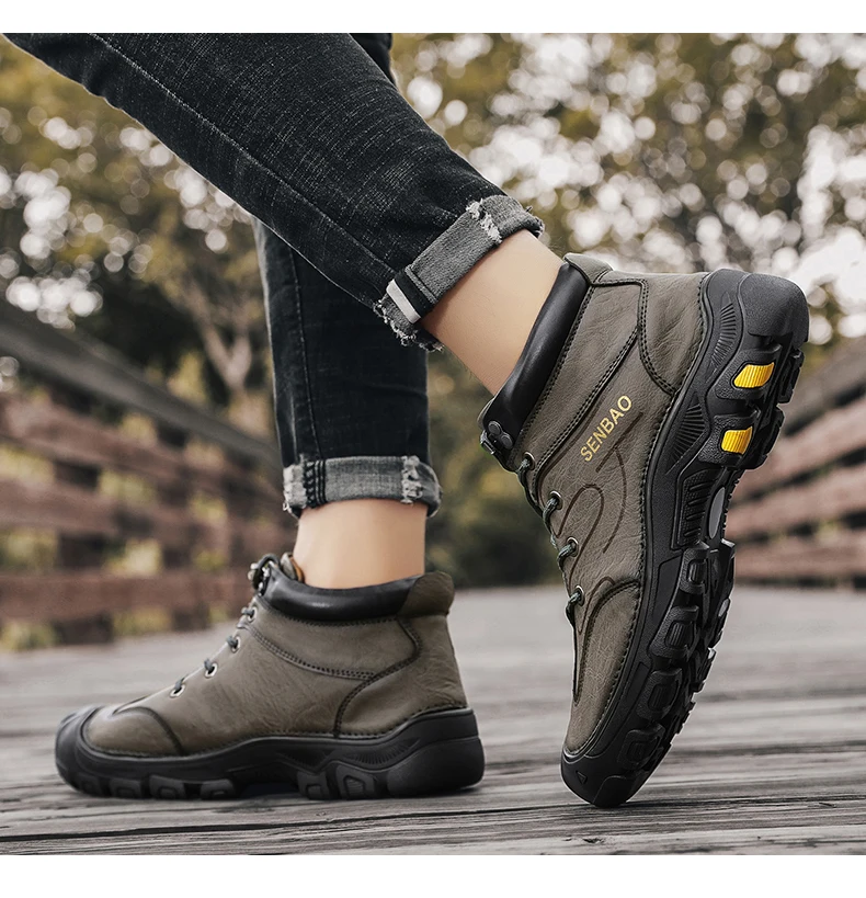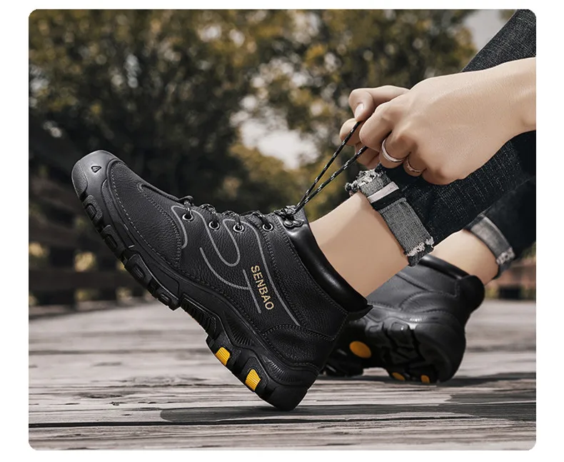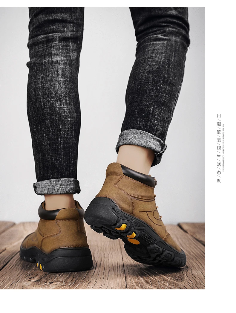 Брендовые зимние мужские ботинки, теплые мужские зимние ботинки, Водонепроницаемые кожаные мужские походные ботинки, уличные кроссовки, мужские рабочие ботинки, мужская обувь
