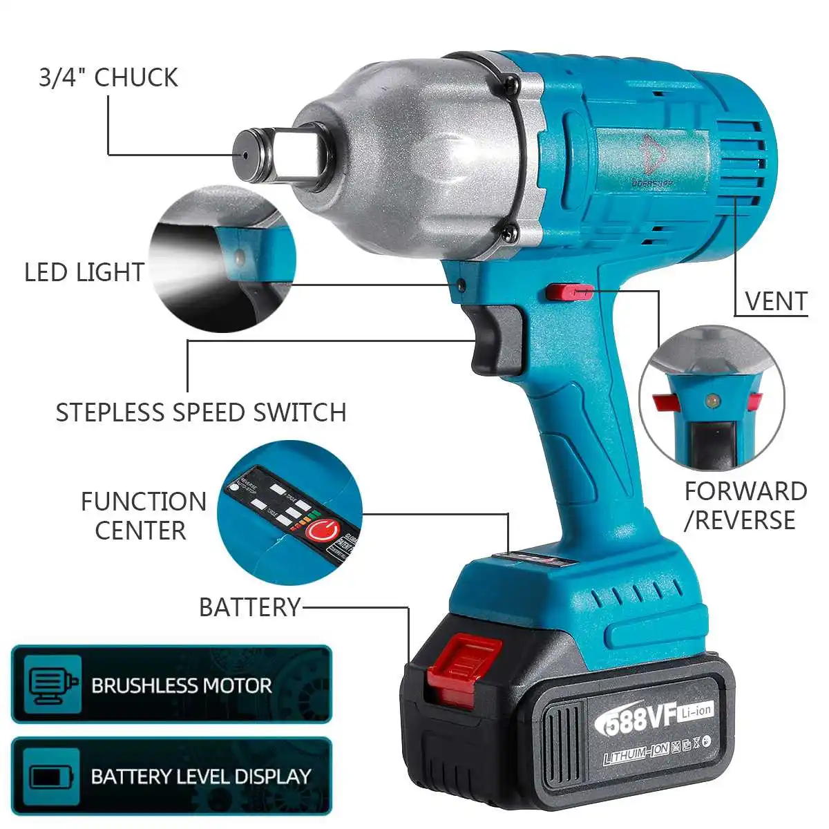 Реальный 34 Н. М беспроводной электрический ударный гайковерт дюйма торцевые электроинструменты 588Vf литиевый аккумулятор светодиодный светильник ка адаптирован к Makita 18V батарея