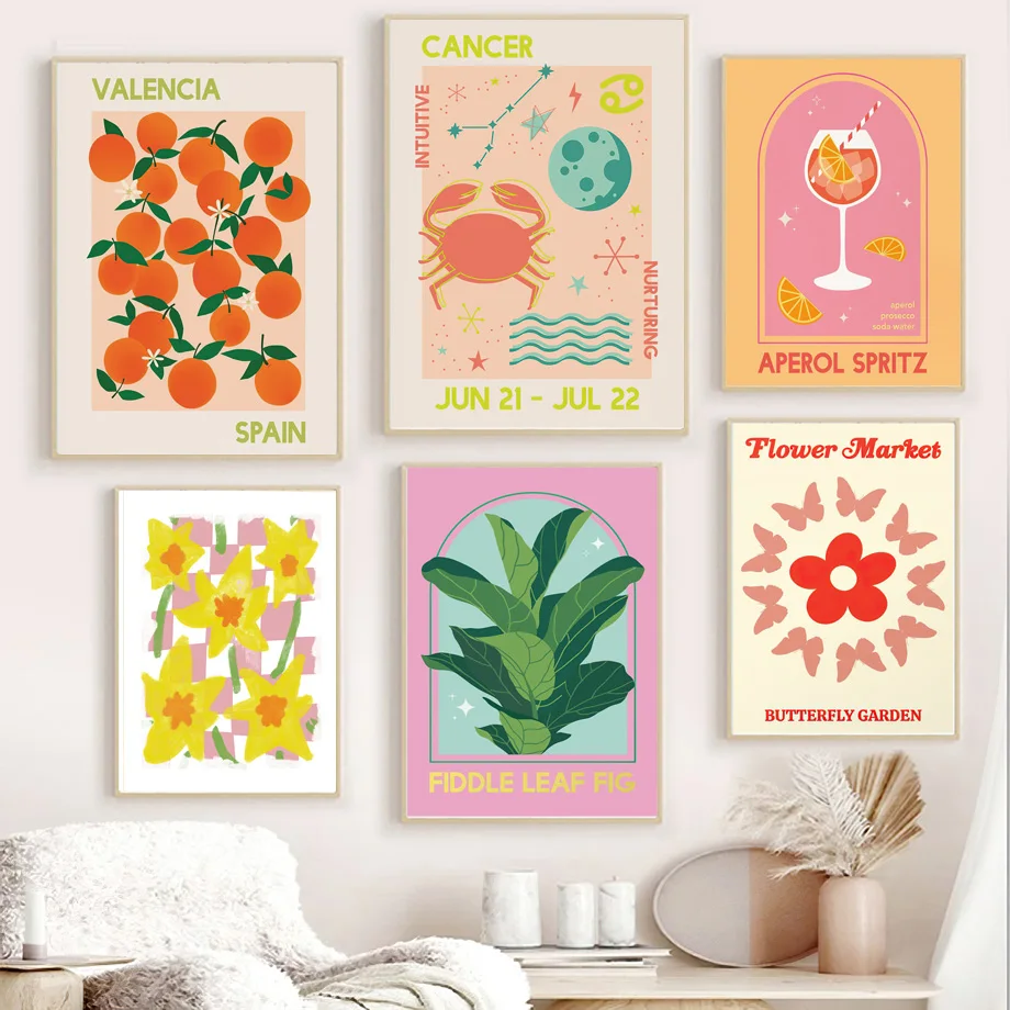 Красочный Абстрактный цветочный рынок, ботанические ретро-постеры и...