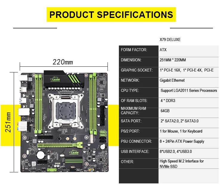 Motherbaord набор включает: 1 * материнская плата + 1 * Intel XEON E5 2630 V2 CPU + 4*4 Гб DDR3 1600 МГц ECC RAM