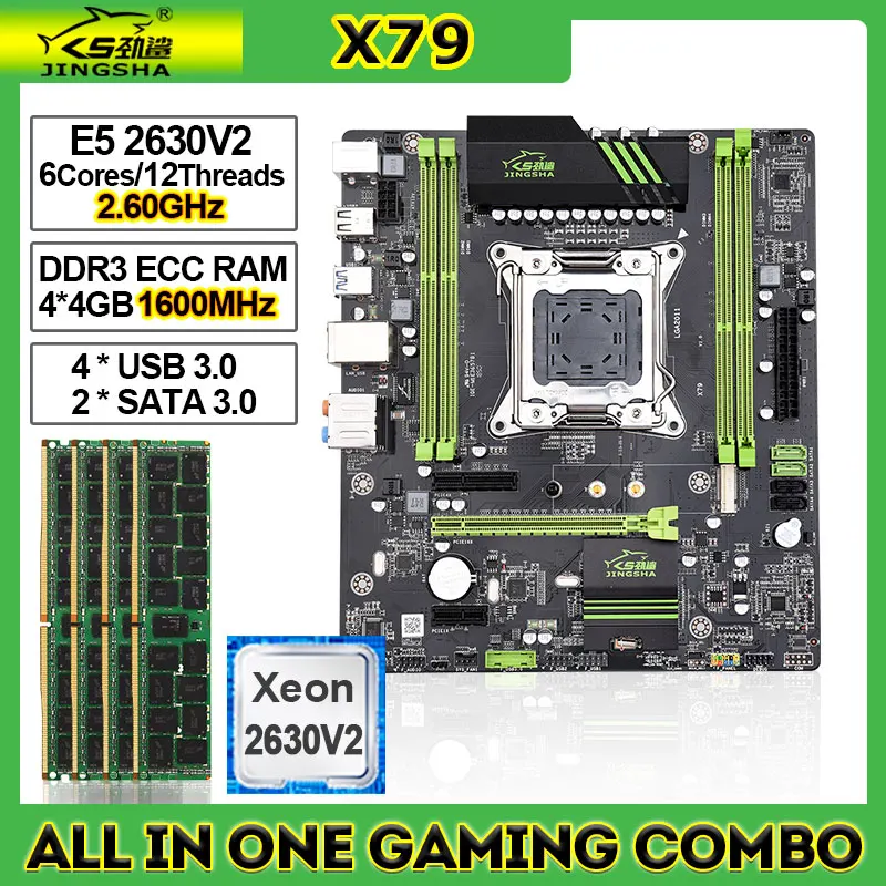 Комплект материнской платы JINGSHA X79 с процессором E5 2630 V2 + ОЗУ DDR3 16 Гб, поддержка USB3.0 SATA3.0 Lga 2011 Xeon