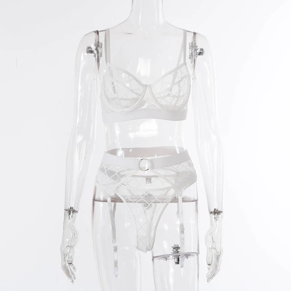 Сексуальное эротическое нижнее белье, женское нижнее белье, бюстгальтер и трусики, комплекты с геометрической вышивкой, кружевные терки, прозрачный чувственный комплект нижнего белья