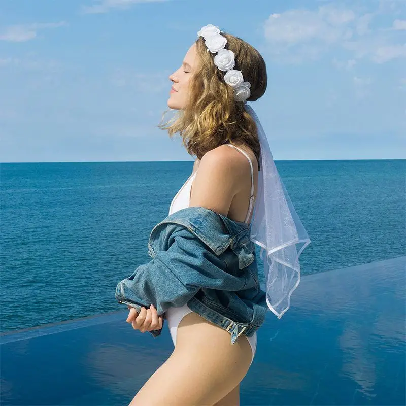 Женский свадебный венок с вуалью, белый цветочный венок, свадебная ...