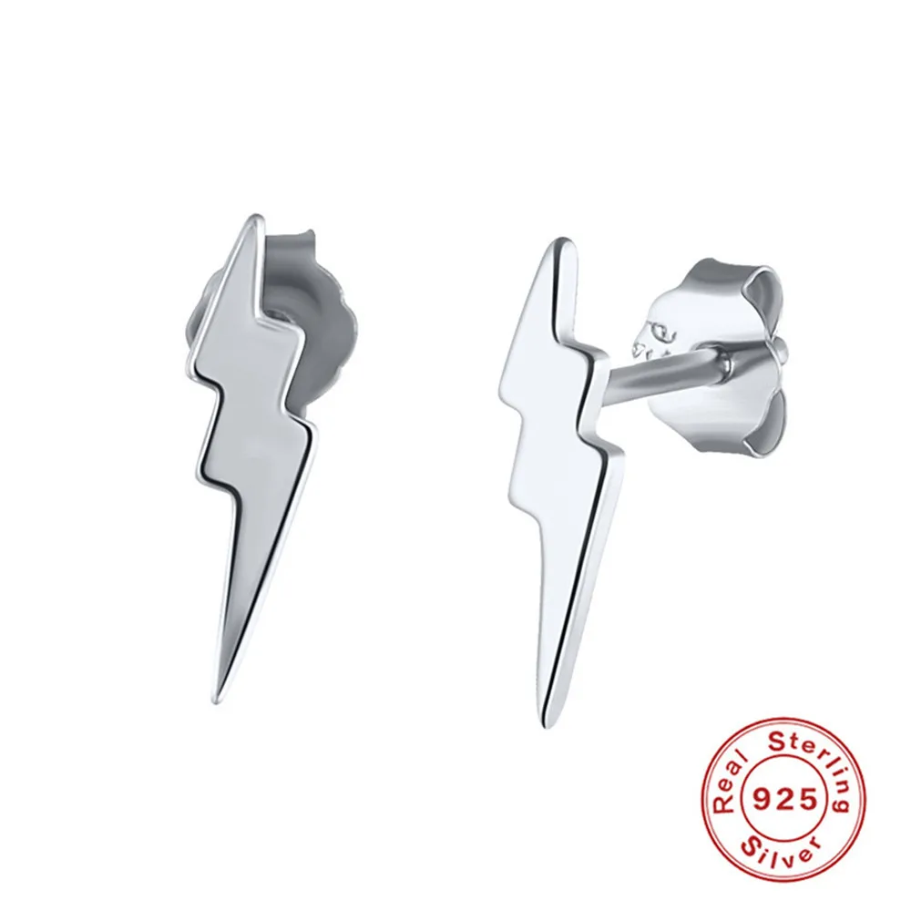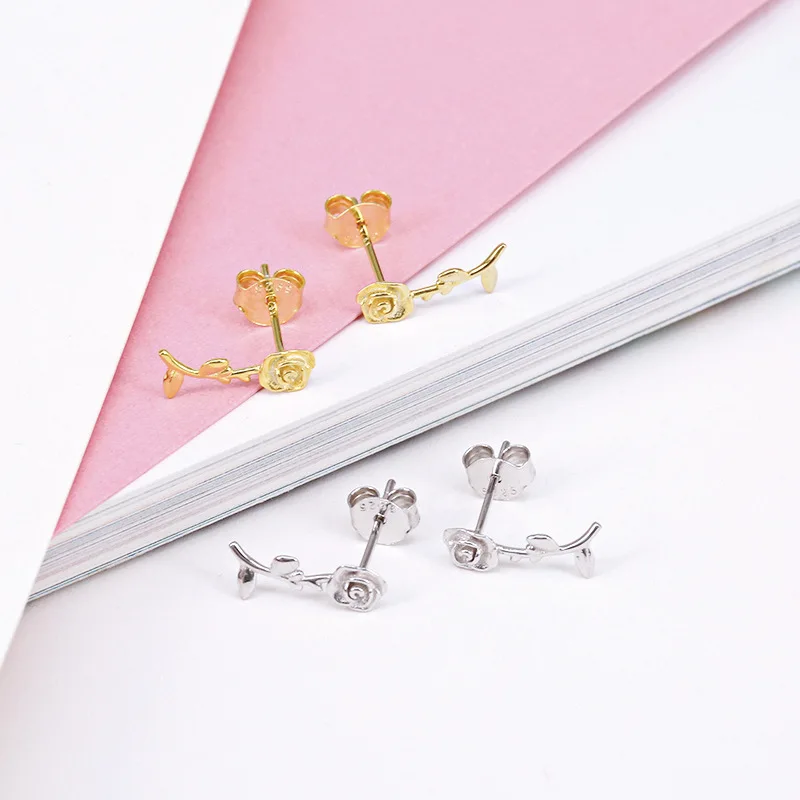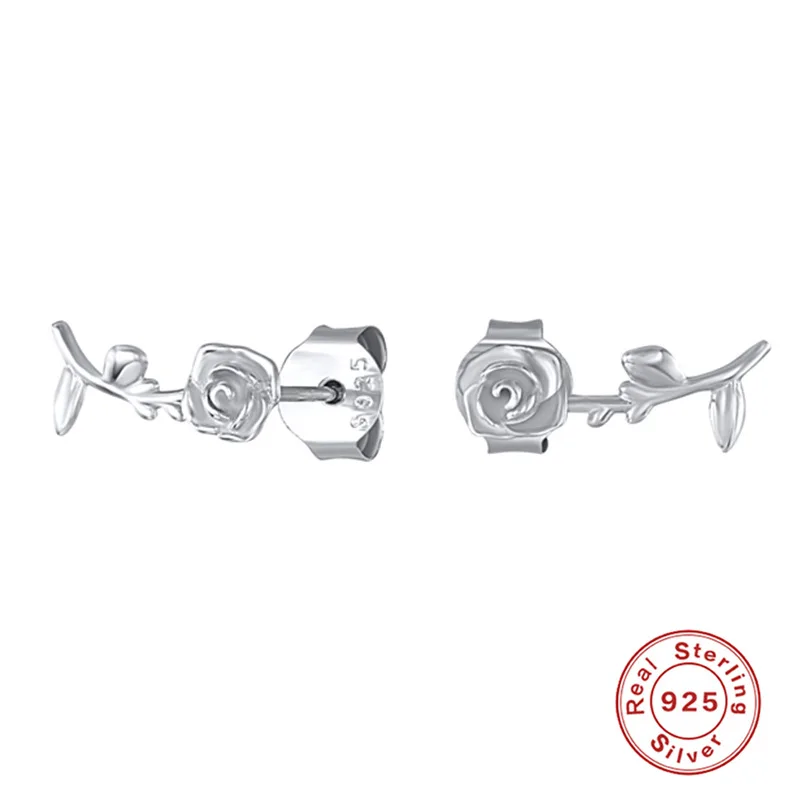 Серьги-гвоздики женские серебряные в минималистическом стиле с молнией и розой