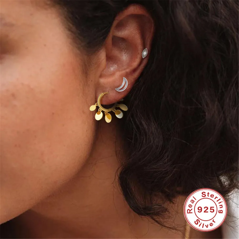 Тип Украшения: минимализм F.I.N.S 925 пробы серебряные серьги-гвоздики для женщин Moon Sun Safe Pin Eye Lightning Rose Пирсинг Серьги Pendientes