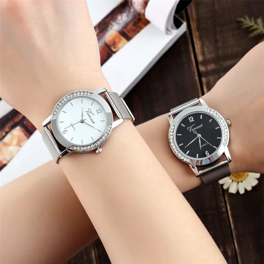 Женские Аналоговые кварцевые часы с сетчатым браслетом из нержавеющ...