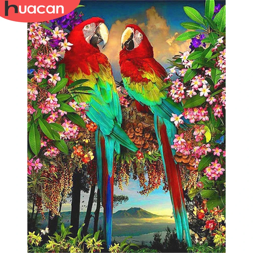 HUACAN краска по номеру попугай животные наборы для взрослых ручная краска ed DIY картина по номеру цветок на холсте домашнее украшение 40х50см