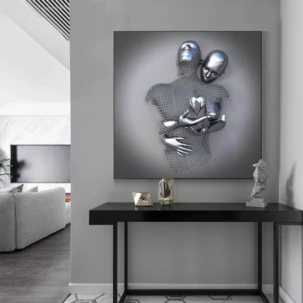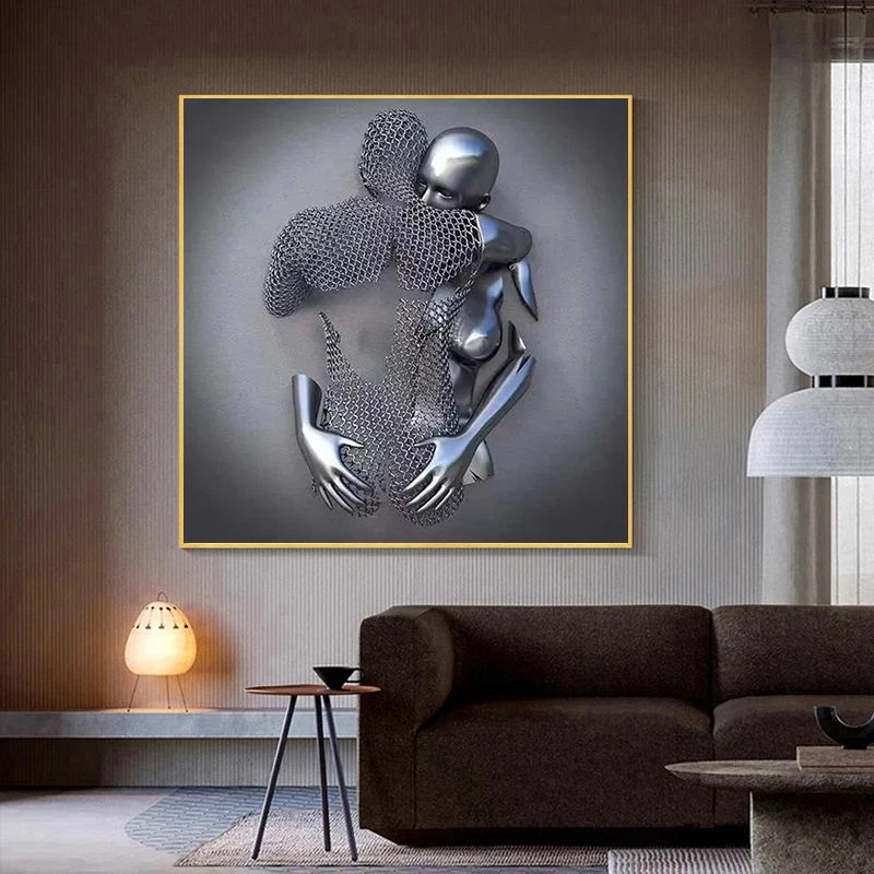 Металлическая фигурка, статуя, искусство, холст, живопись, романтические абстрактные постеры и принты, настенные картины, Современная гостиная, украшение для дома