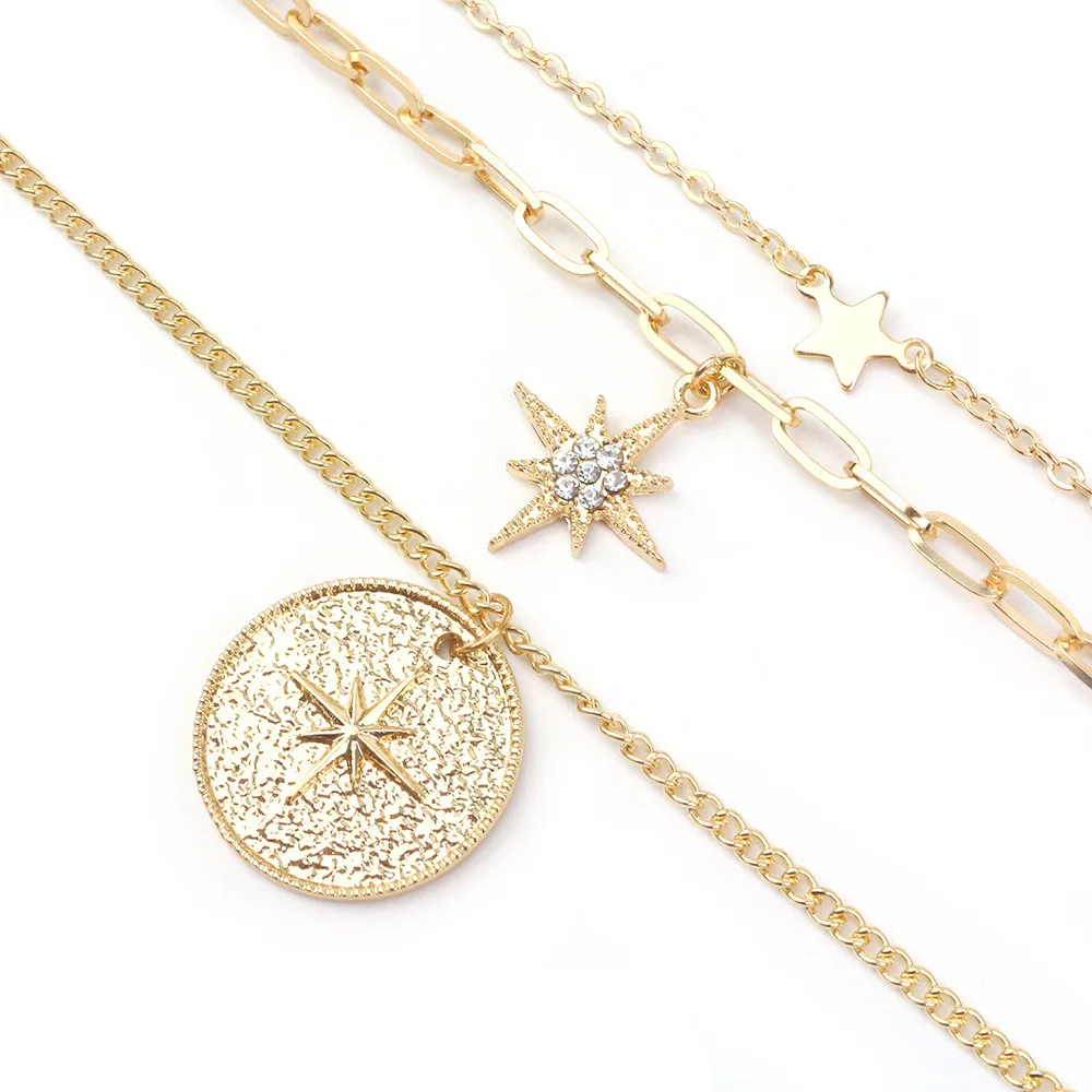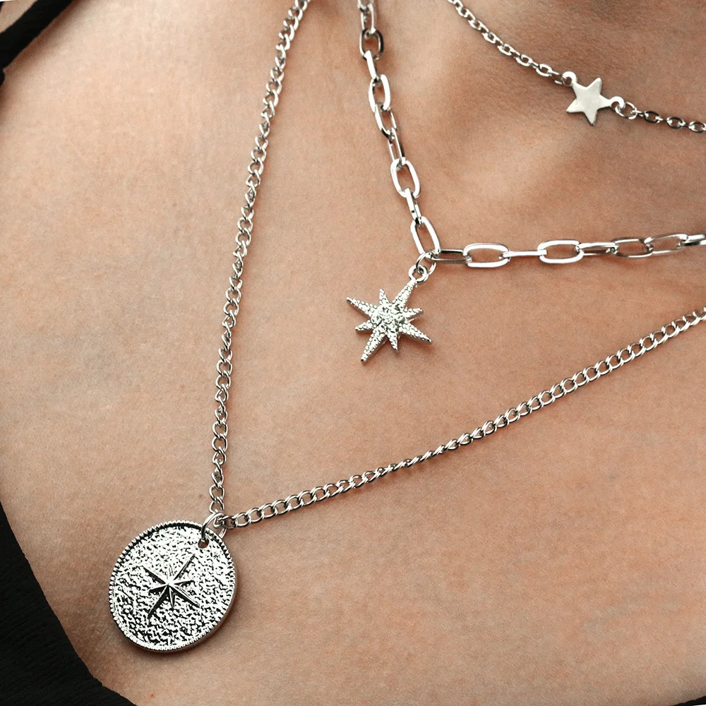 Цепочка-чокер с пятиконечной звездой, многослойная, с кристаллами, в готическом стиле