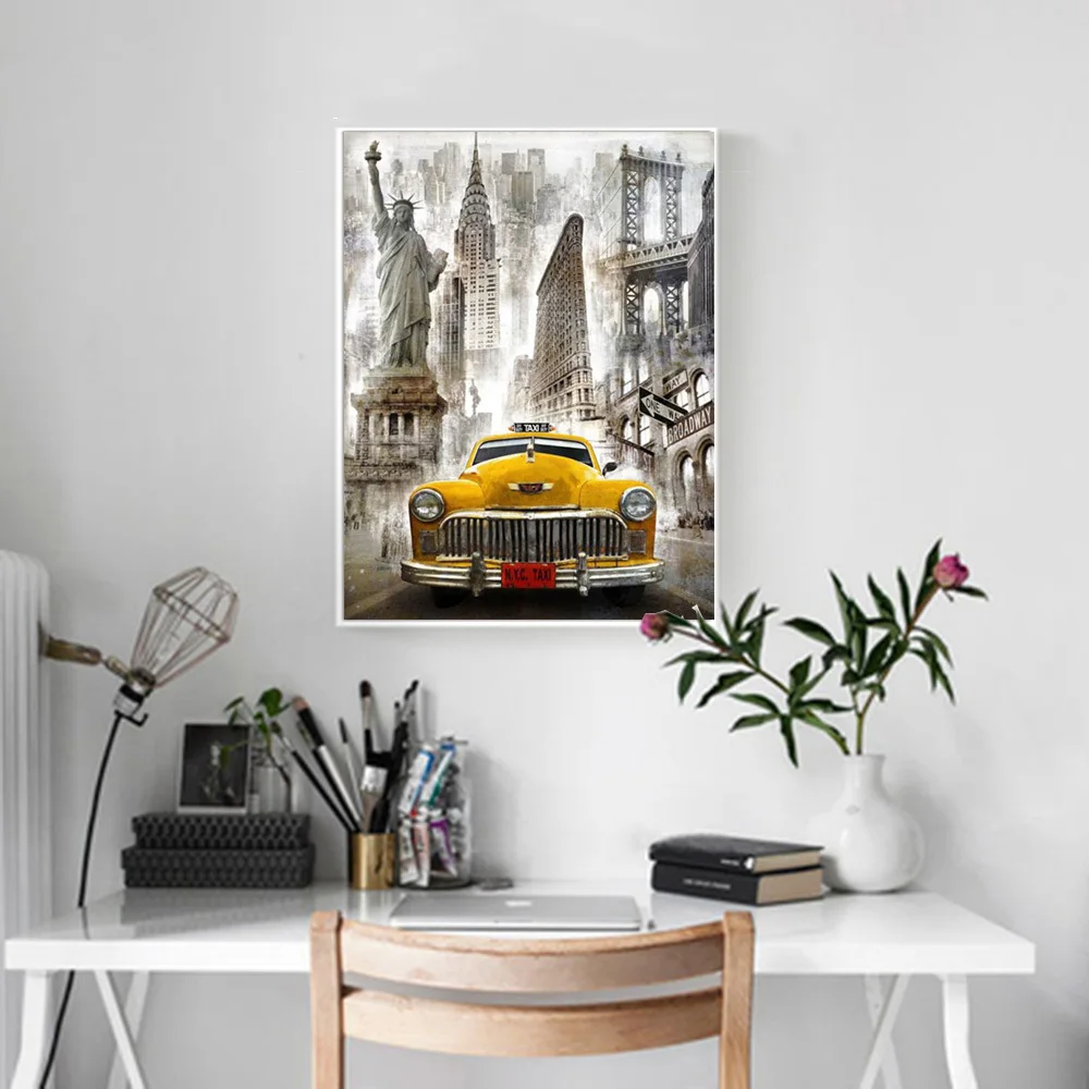 Алмазная живопись Huacan, мозаика в виде автомобиля, квадратнаякруглая вышивка, строительство, ландшафт, Декор для дома