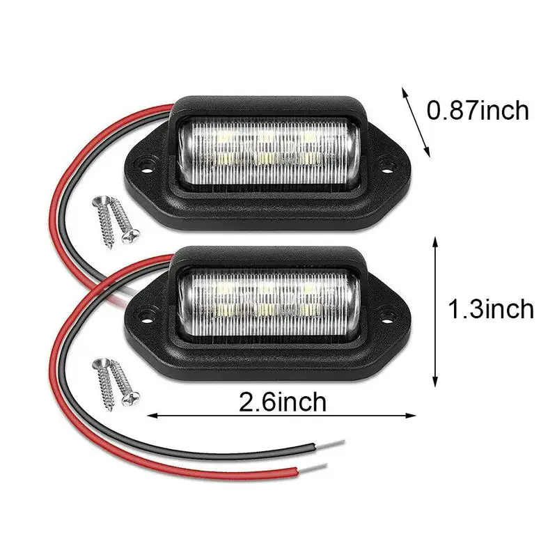 1 шт. черный 6 светодиодный номерной знак лампы для грузовиков внедорожниковОписаниеСупер яркий светодиодный светильник номерного знака, обеспечивает максимальную видимость и безопасность. Может использоваться как светильник номерного знака, ступенчатый светильник, дверной светильник. Подходит для мотоциклов, лодок, автомобилей, грузовых автомобилей, трейлеров, RV, украшенное мозаикой из драгоценных камней, 12V. Особенности продукта100% новый товар высокого качества.6 светодиодный Белый ксеноновый светодиодный светильник, супер яркий светодиодный светильник обеспечивает максимальную видимость и безопасность, белый светильник, цветовая температура 6000K.Универсально подходят для всех лодки автомобили, грузовых автомобилей, трейлеров, RV, украшенное мозаикой из драгоценных камней, 12V.Длительный срок службы и низкое энергопотребление.Простота установки, прямой болт, ударопрочность.Печатная плата полностью запечатана эпоксидной смолой, чтобы обеспечить ее водонепроницаемость.Идеально подходит для освещения интерьеров транспортных средств, включая footwells, дорожки, таблицы карты и другие области.Может использоваться как светильник номерного знака, ступенчатый светильник, дверной светильник.Простой в использовании, просто закрутите винт, красный провод к положительному, черный провод к отрицательному.Водонепроницаемый дизайн, не беспокойтесь о дождливых днях. Спецификация:Тип устройства: светодиодный светильник номерного знакаМатериал: ПоликарбонатСветильник источник света: светодиодныйЦвет корпуса: черныйСветильник Цвет: белыйЦветовая температура: 6000KМатериал: ПоликарбонатНапряжение: 12 ВМощность: 1,8 WТок: 0.3AПодключение: 2 проводаУстановка: 12v лодки, самолеты, автомобили, RV, мотоцикл и грузовикФункция: номерной знак/шаг/дверные огниРазмеры: 2,6 (L)x1.3(W)x0.87(H) дюймовПроводка:Черный-отрицательныйБелый-положительный Посылка включает в себя:1x светодиодный светильник номерного знака.2 винта.