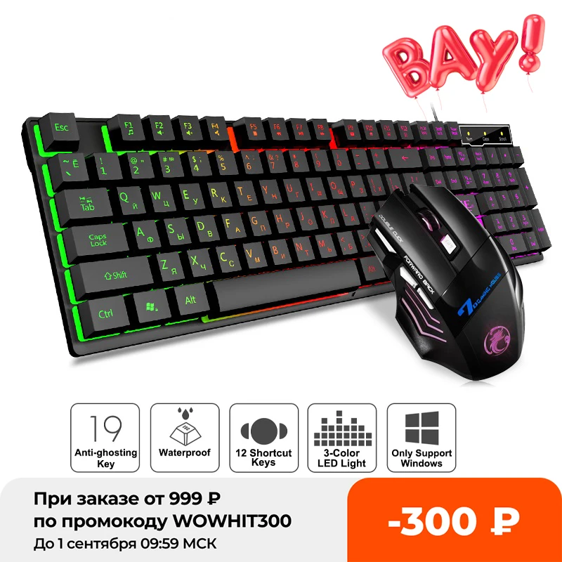 Игровая клавиатура с RGB-подсветкой и бесшумной игровой мышью