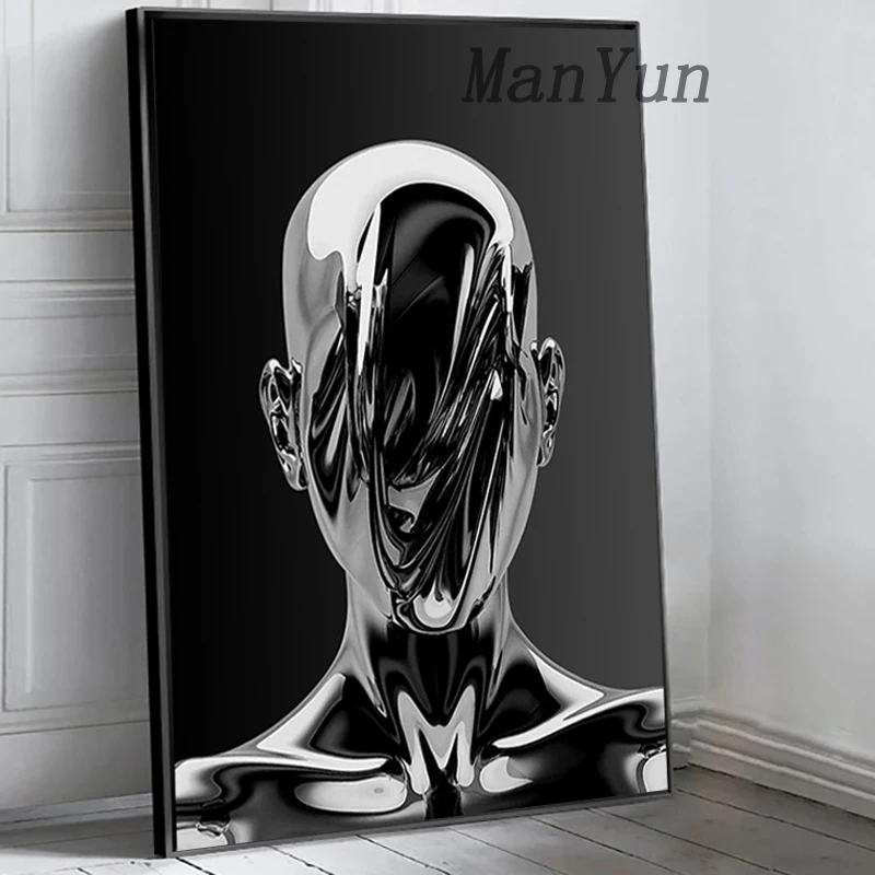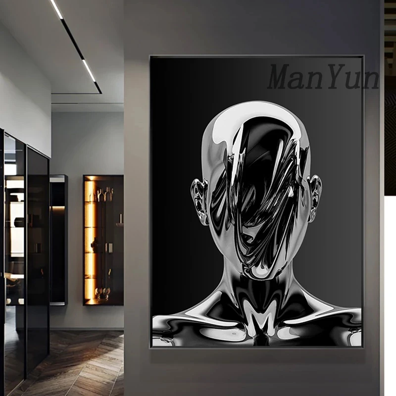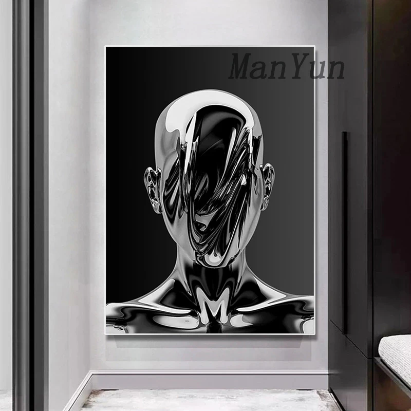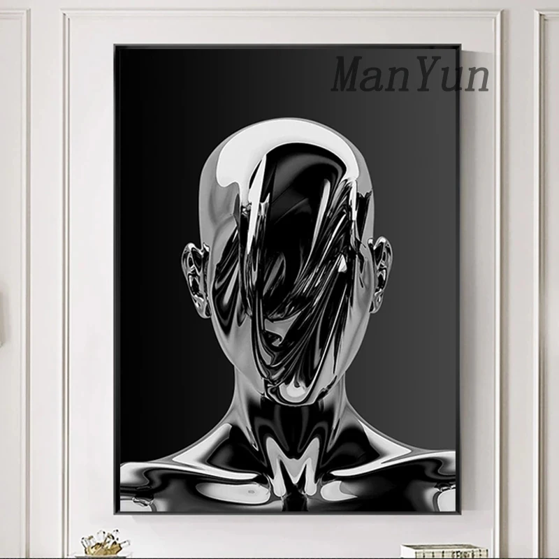 Скандинавская Металлическая статуэтка, Картина на холсте, абстрактные постеры и принты, скульптура, Настенная картина для гостиной, Декор
