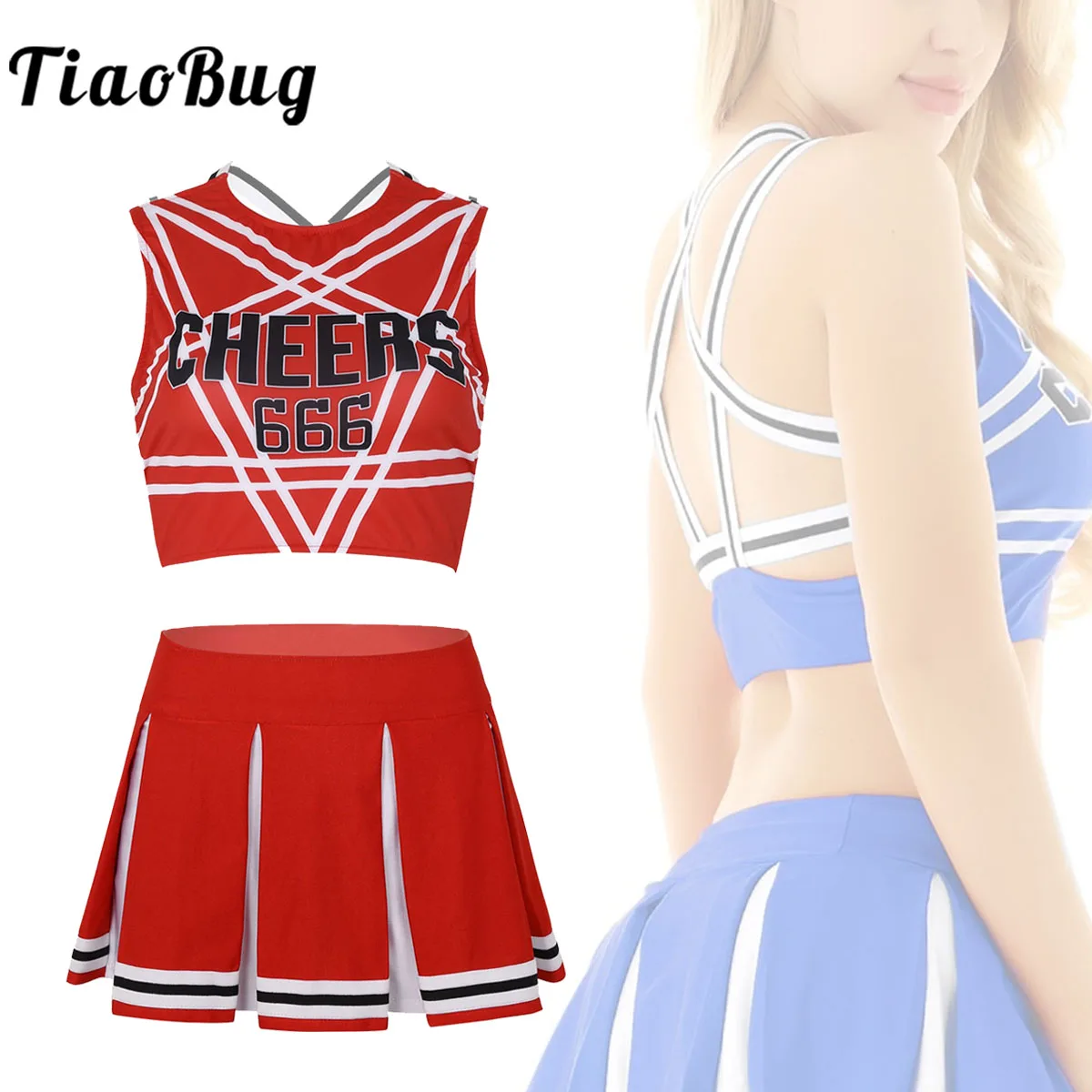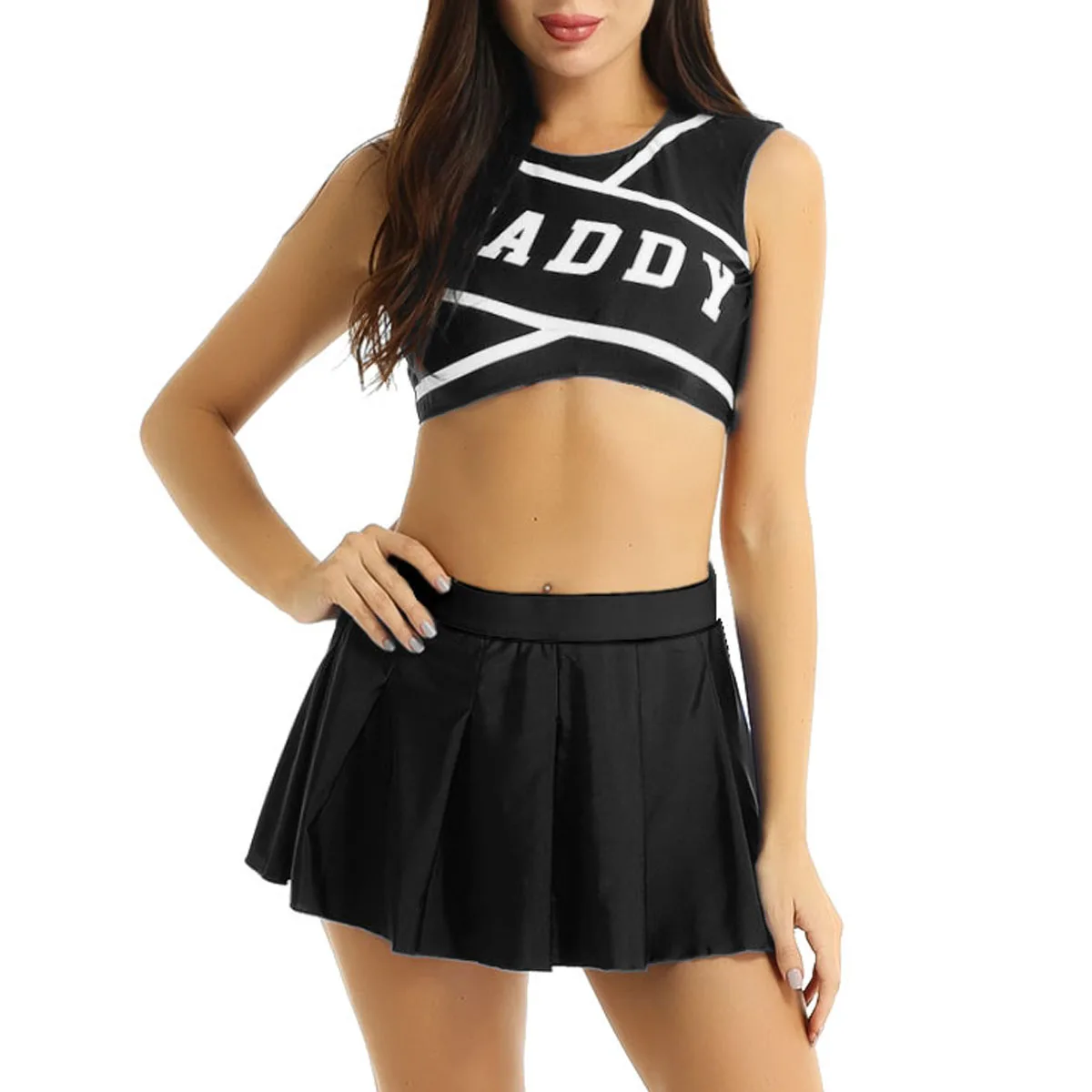 Горячий костюм для чарлидинга, женское нижнее белье для девушек, укороченный топ с мини плиссированной юбкой, униформа