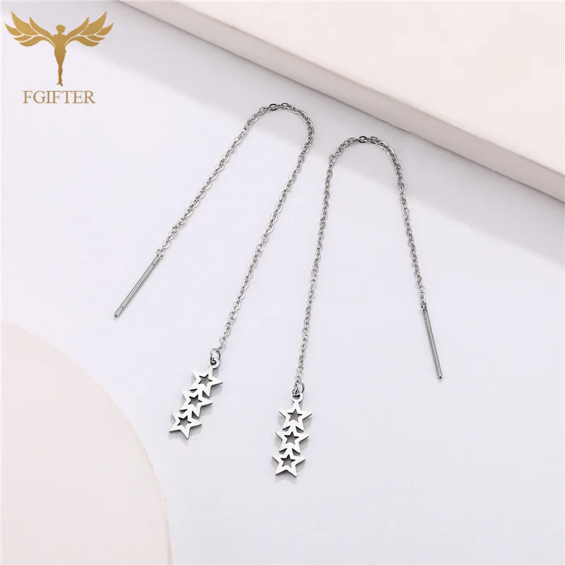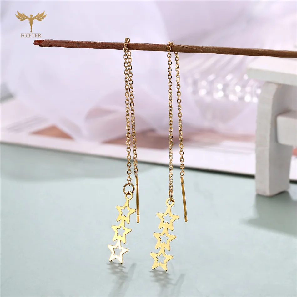 Серьги с резьбой из нержавеющей стали, подвески в виде звезд, длинная цепочка, серьги-капельки, ювелирные изделия, необычные женские серьги, модные аксессуары