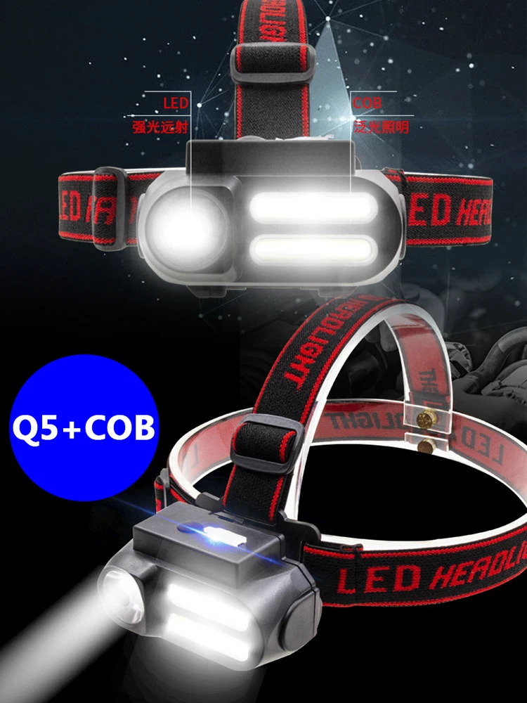 Налобный фсветильник рь для рыбалки XP-G Q5 COB, водонепроницаемый, с перезаряжаемой батареей 18650, фонарик для кемпинга, z30