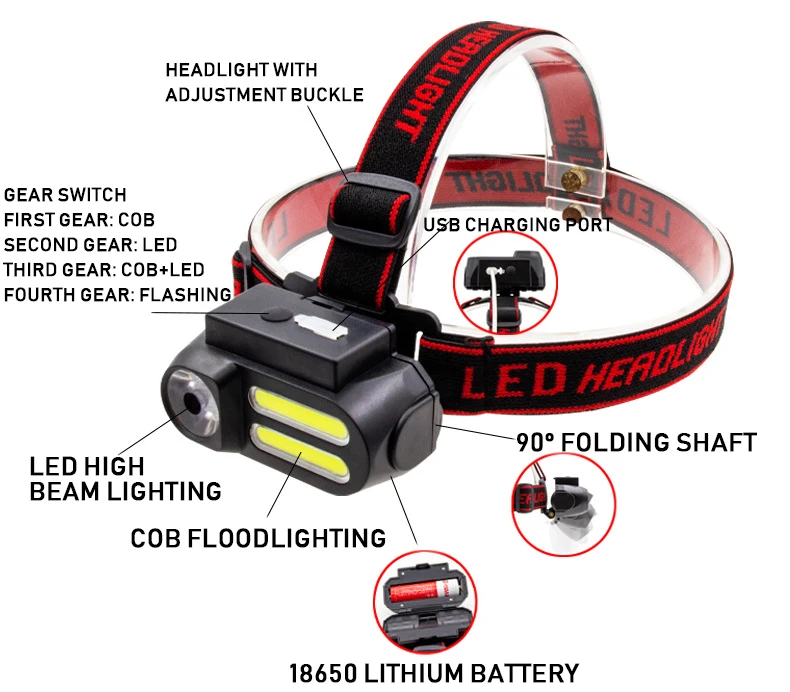 Параметры продукта:Бренд: LITWODСпособ зарядки: зарядка через USBИспользуйте аккумулятор: 1*18650 аккумуляторСветильник: 4 режима. COB --- светодиодный --- COB светодиодный --- стробоскопМатериал: АБССветодиодный: 2 светодисветодиодный COB + XPE