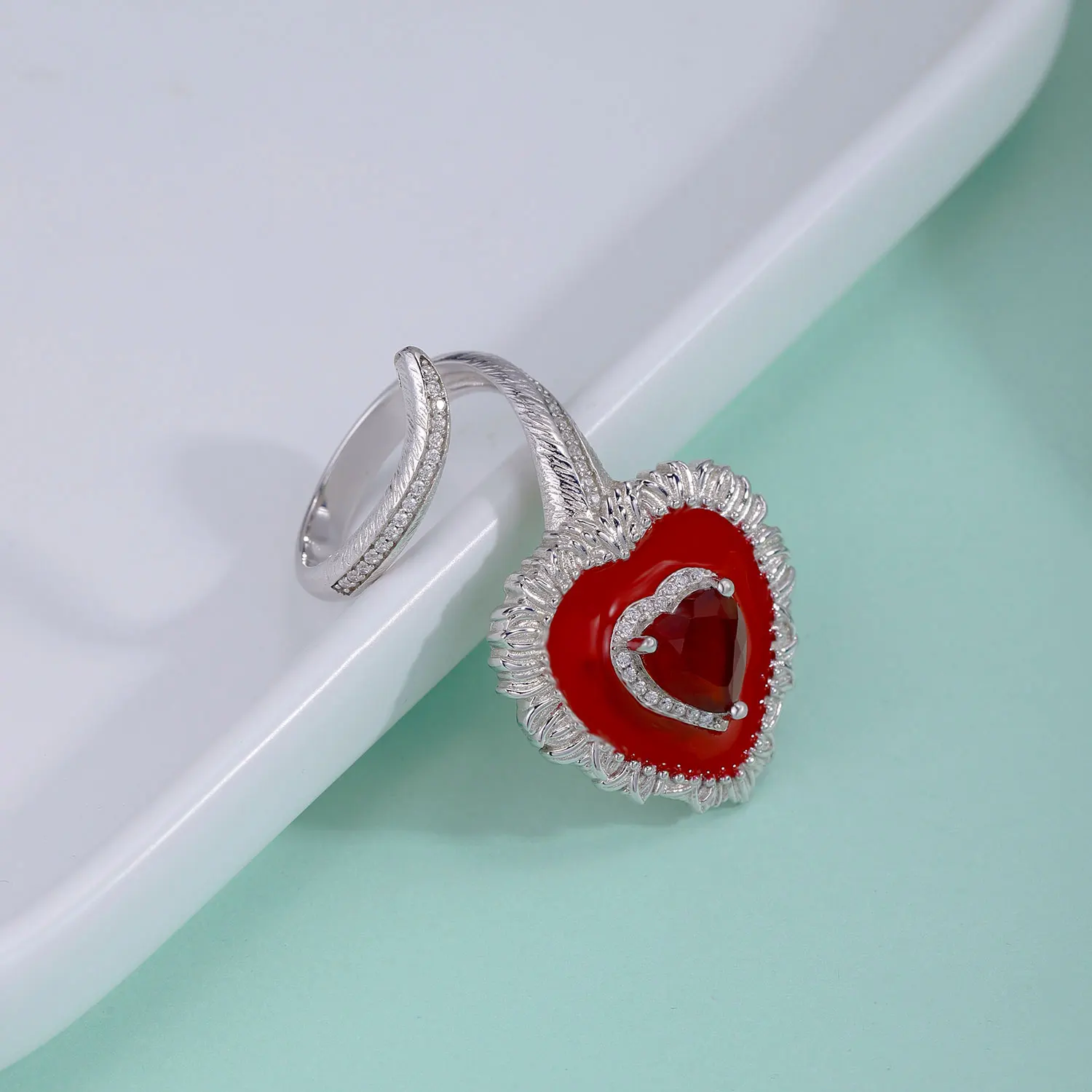 Женское кольцо из серебра 925 пробы, с подвеской в виде сердца