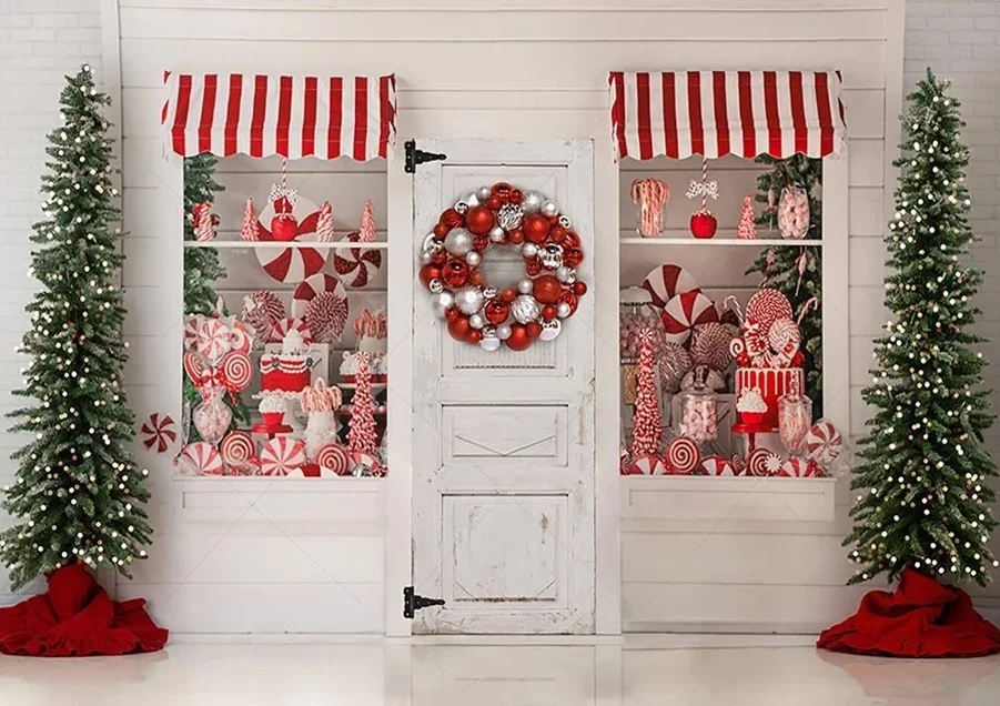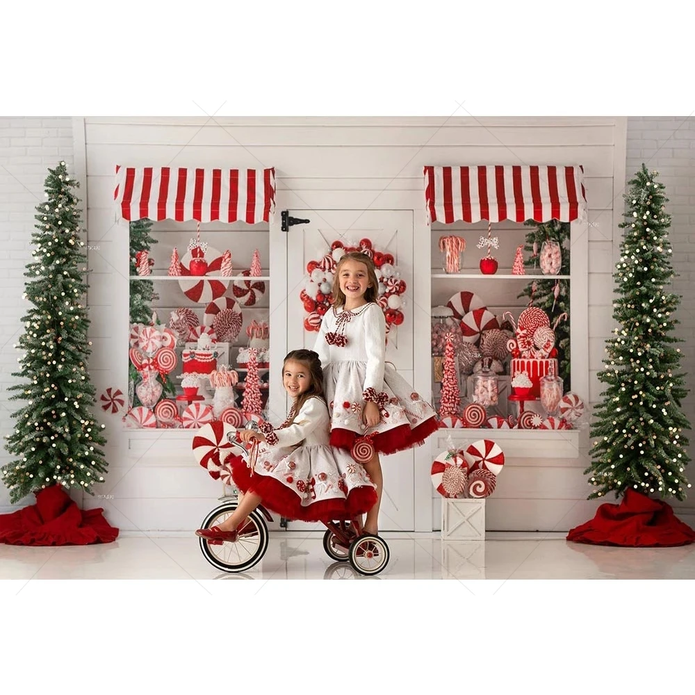 Фон для фотосъемки с изображением зимних конфет магазина рождественских милых девочек детей портретный фон для фотостудии рождественские деревья Ретро Декор из белого дерева