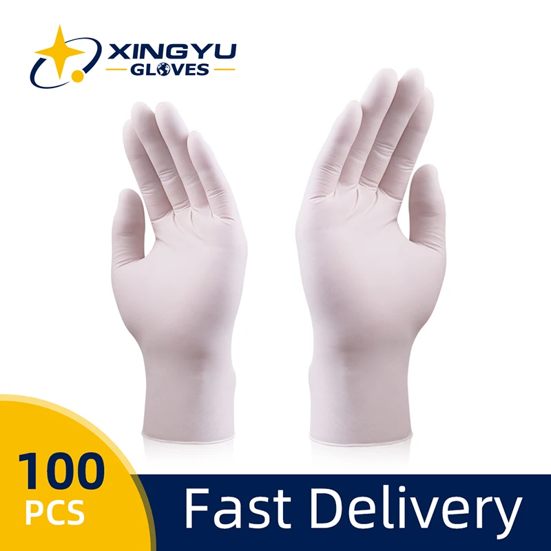 100 шт. одноразовые нитриловые перчатки Xingyu, Белые Водонепроница...