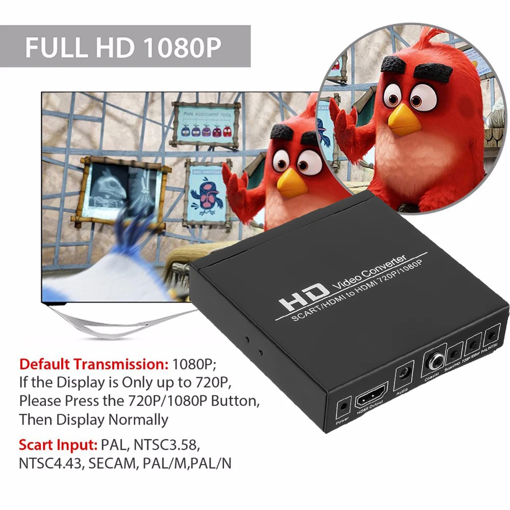 Цифровой преобразователь Full HD 1080P, видеоконвертер SCART в HDMI-совместим с Европейскойамериканской вилкой, адаптер для HDTV HD