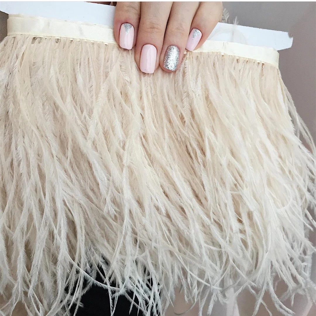 1 метр бежевый страусиные перья отделка бахрома 8-10 см натуральное украшение шлейф лента для свадебной вечеринки платье аксессуары для одежды